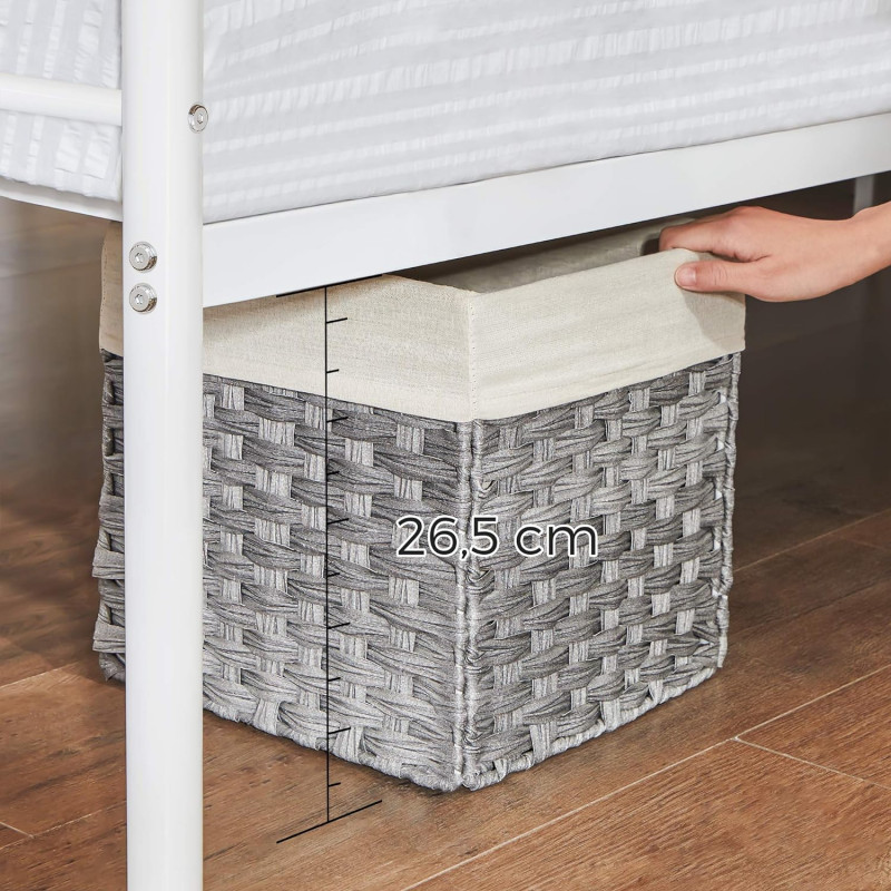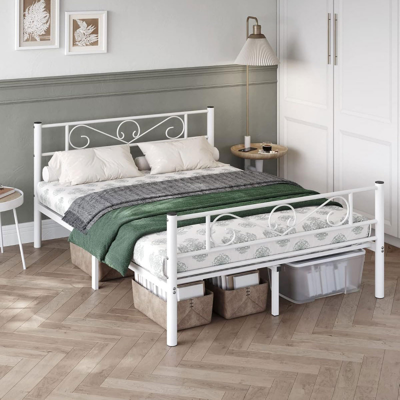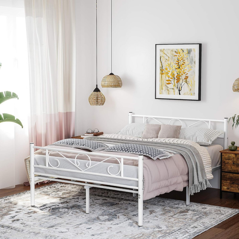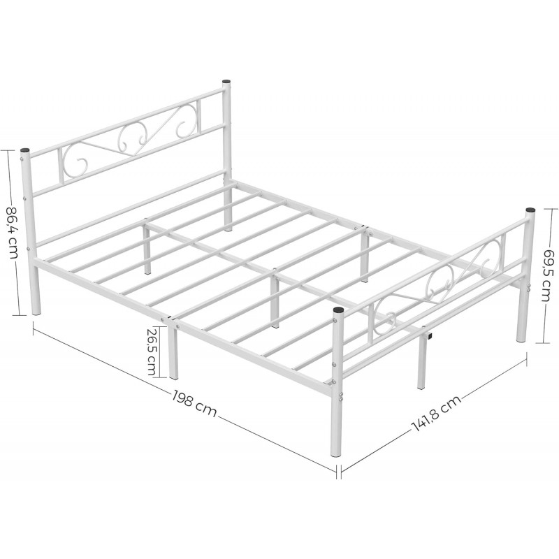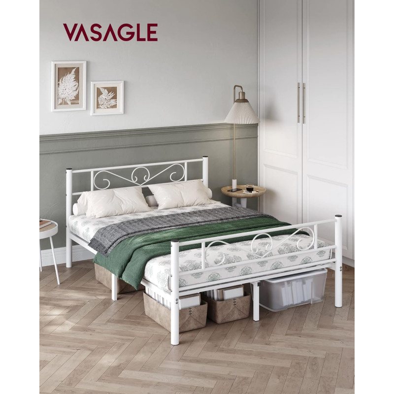 Robust si stabil: Barele de sustinere de inalta calitate si 9 picioare metalice robuste cu conectori metalici in forma de U inzestreaza acest cadru de pat dublu cu o mare stabilitate si o sarcina maxima de 250 kg - fara oscilatii si zgomote enervante Spatiu amplu sub pat pentru depozitare: Cu barele de sustinere la 26 cm de podea, va puteti depozita cutiile de depozitare sub cadrul patului, iar un aspirator robot poate trece prin el pentru o curatare usoara