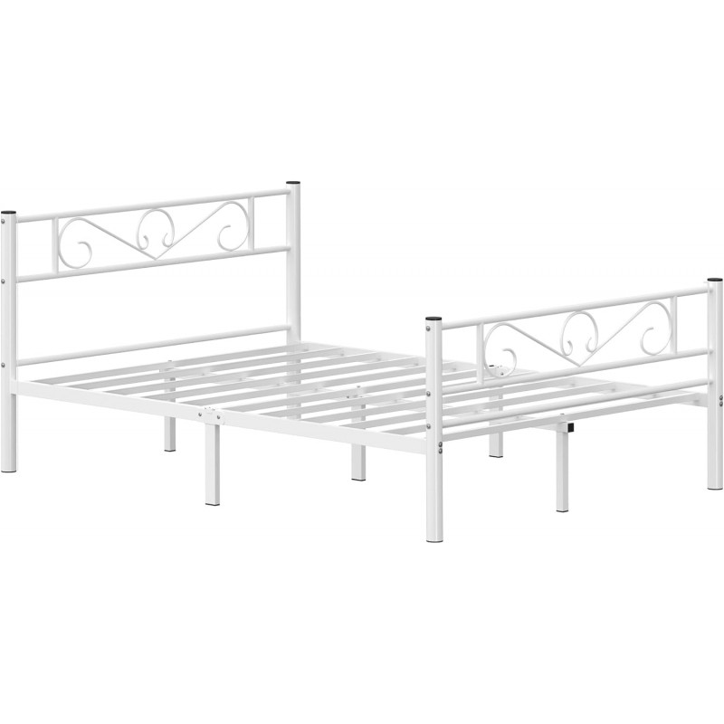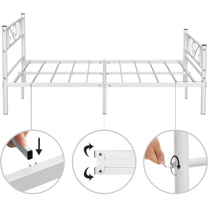 Placute pentru picioare incluse: Fiecare picior al acestei rame de pat metalice rezistente este prevazut cu o placuta pentru picioare pentru a reduce zgomotul in timpul miscarii si pentru a proteja podeaua de zgarieturi