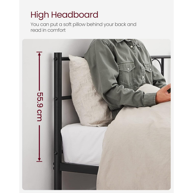 Elegant si confortabil: Un design minimalist si culoarea neagra clasica creeaza o rama de pat sic care se potriveste usor cu diverse decoruri de acasa; asezati o perna in spatele spatelui si sprijiniti-va de ea in timp ce cititi - capul de pat inalt permite mai mult confort