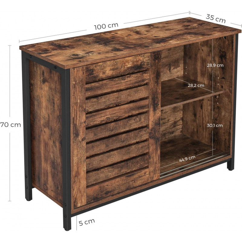Scurta descriere Comoda VASAGLE cu usi glisante este o piesa practica si eleganta, ideala pentru organizarea eficienta a spatiului. Designul industrial combina cadrul metalic negru cu finisajul maro rustic, iar sistemul de usi glisante permite acces facil fara a ocupa spatiu suplimentar.