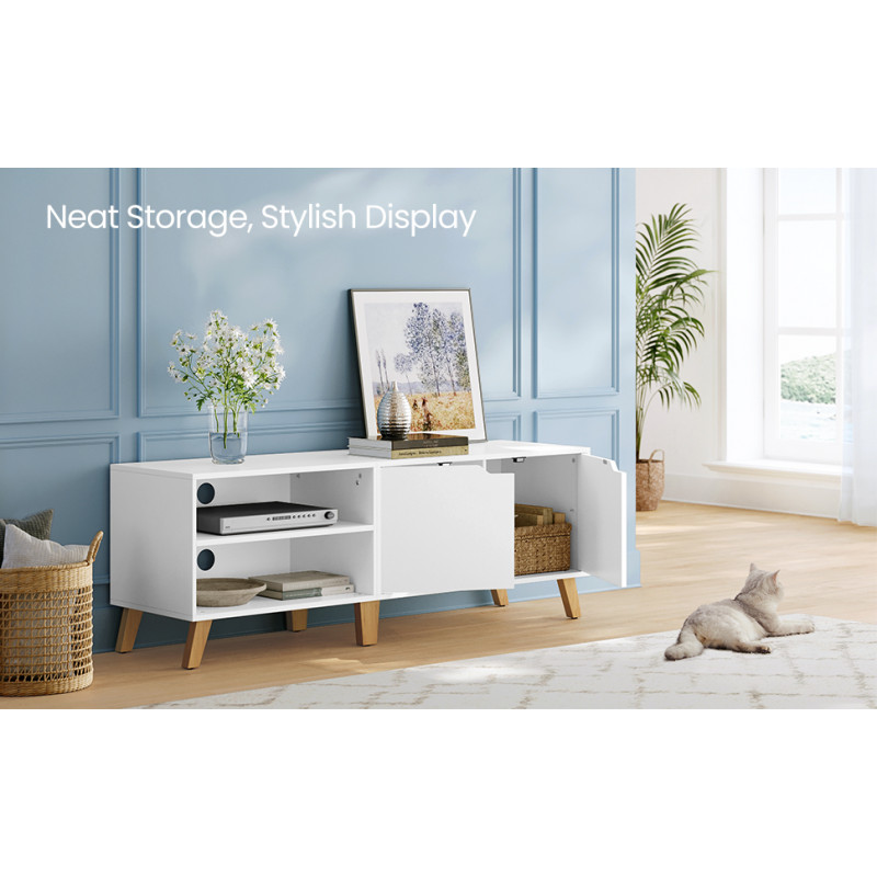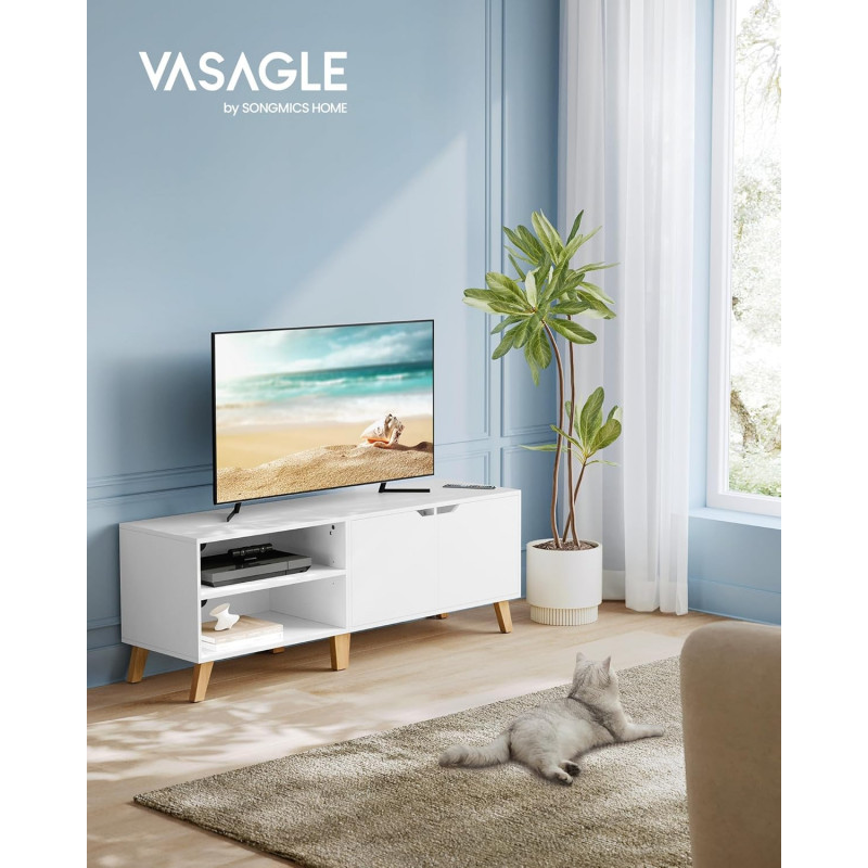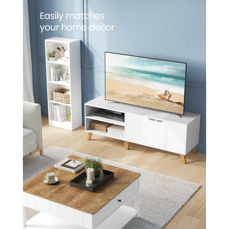 Capacitate de incarcare statica: 50 kg Despre acest articol Suportul TV alb adauga o nota de farmec unic camerei dvs. Suportul TV poate gazdui televizoare de pana la 65 de inci. Pentru televizoarele mici, este loc suficient sa plasati plante pe ambele parti.Puteti plasa consolele de jocuri si receptoarele in cele 2 compartimente deschise si depozita DVD-urile in compartimentele cu usi. Filmul este in desfasurare si nu trebuie decat sa va asezati si sa va bucurati de el.Datorita