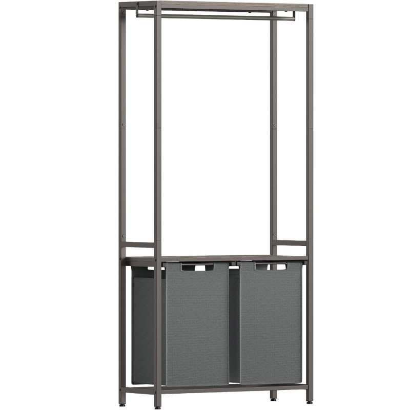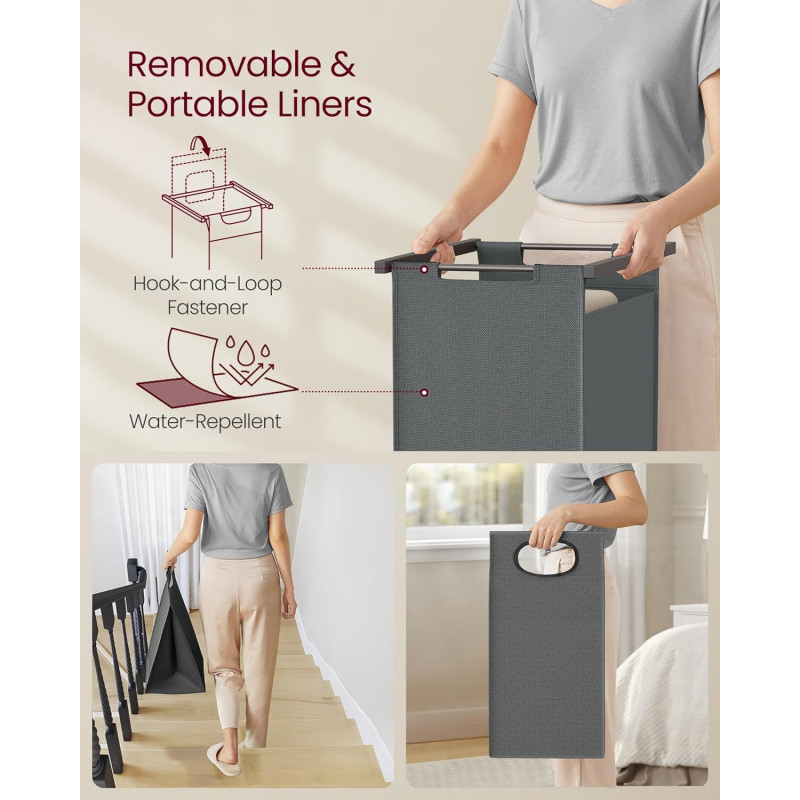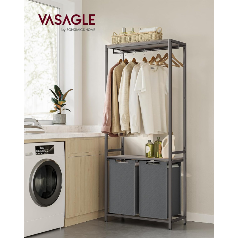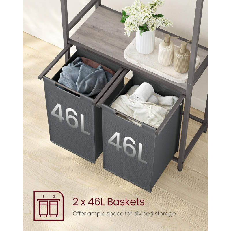 Sarcina maxima: capacitatea statica de incarcare a suportului pentru haine: 20 kg. Despre acest articol Cos de rufe cu 2 sectiuni: Cu o capacitate totala de 92 L (46 L per captuseala), acest cos de rufe poate gazdui cu usurinta imbracamintea de familie pentru o saptamana. Designul sau cu 2 sectiuni simplifica sortarea rufelor. 2 rafturi de depozitare: Acest cos de rufe vine cu doua rafturi, oferind spatiu amplu pentru organizarea articolelor de toaleta, a articolelor de rufe si multe altele. Raftul din mijloc poate functiona ca o statie de pliere pentru a va facilita rutina de spalat rufe.