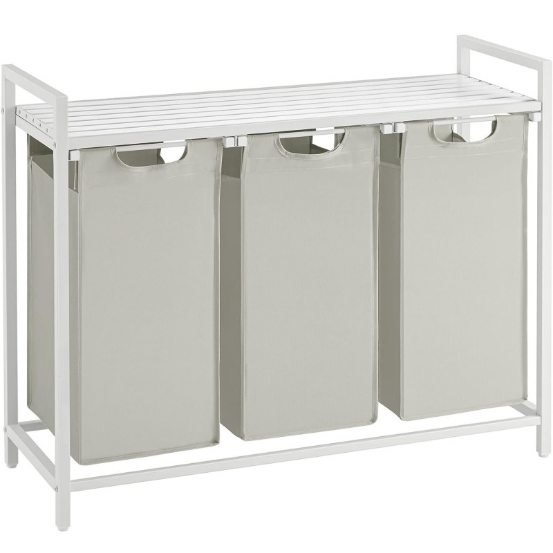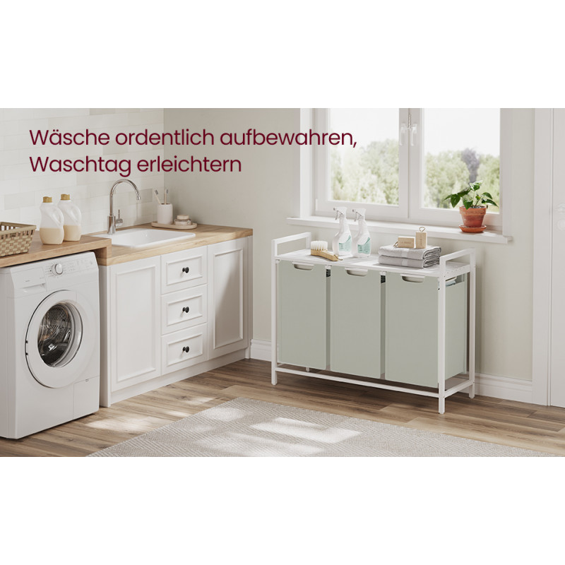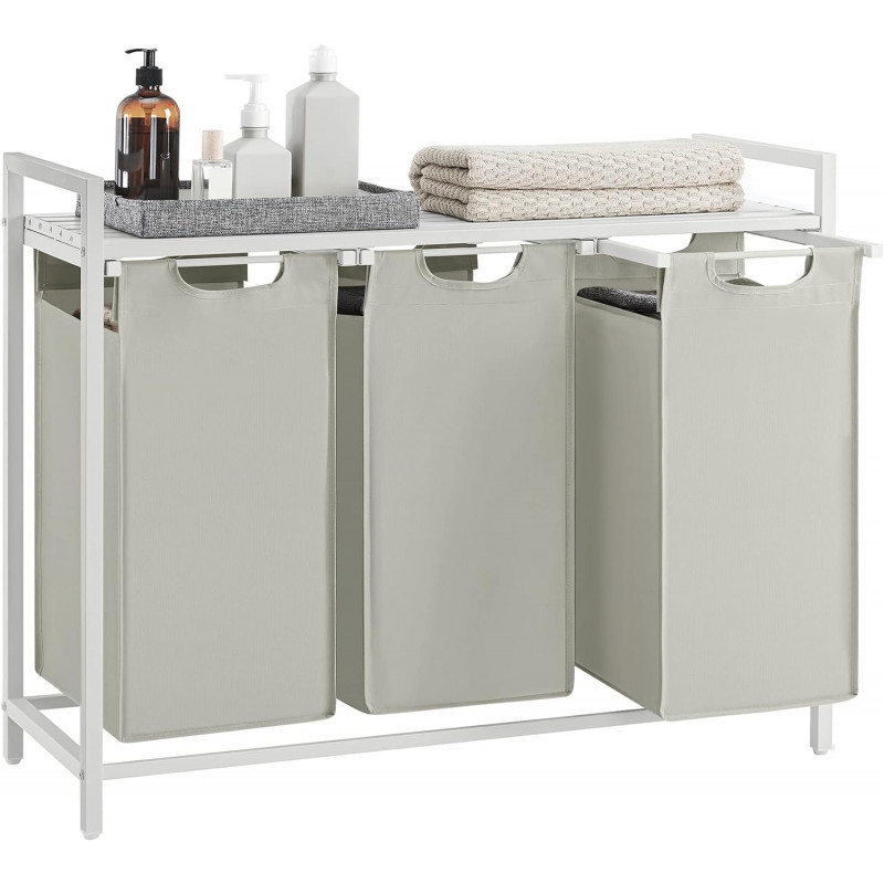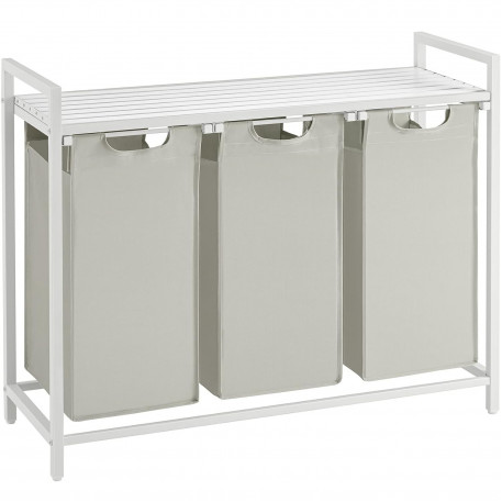 Material: MDF (placi de fibre de densitate medie), otel, tesatura Oxford Despre acest articol 3 compartimente pentru a va depozita rufele separat: Capacitatea totala a acestui cos de rufe: 114 litri (per compartiment 38 litri). Cele 3 compartimente va ajuta sa va depozitati rufele separat dupa culori sau tipuri.