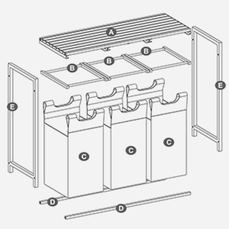 Sarcina statica per sac: 8 kg Despre acest articol Cosul de rufe are o capacitate totala de 114 L, fiecare captuseala avand o capacitate de 38 L. Designul sau cu 3 compartimente va permite sa va organizati rufele in functie de tip si sa separati rufele deschise de cele inchise la culoare.Acest cos de rufe are un raft, oferind spatiu suplimentar pentru a organiza detergentii sau articolele de toaleta. Designul sau cu lamele permite aerului sa treaca prin el pentru o buna ventilatie, prevenind acumularea de mirosuri de la rufe.Fiecare captuseala este echipata cu un panou inferior din plastic pentru a preveni caderea, iar datorita inchiderii cu carlig si bucla, puteti extrage si indeparta fara efort aceste captuseli pentru a le transporta cu usurinta la masina de spalat.Realizat cu un cadru din tuburi de otel de 2 cm si un panou din MDF, acest cos de rufe suporta pana la 20 kg pe raftul sau superior. In plus, fiecare captuseala este fabricata din tesatura Oxford hidrofuga, iar cele patru picioare reglabile asigura stabilitate.Acest sortator de rufe versatil se potriveste perfect in orice camera, fie ca este vorba de spalatorie, baie sau dormitor. Folositi-l pentru a va organiza rufele oriunde aveti nevoie de spatiu suplimentar.