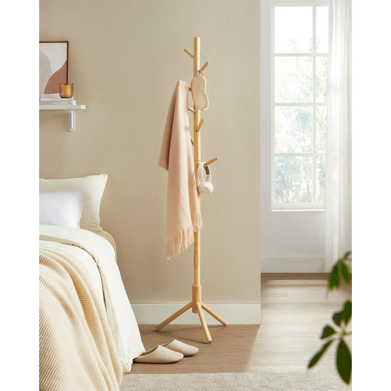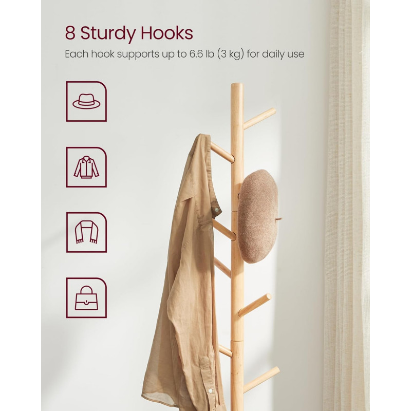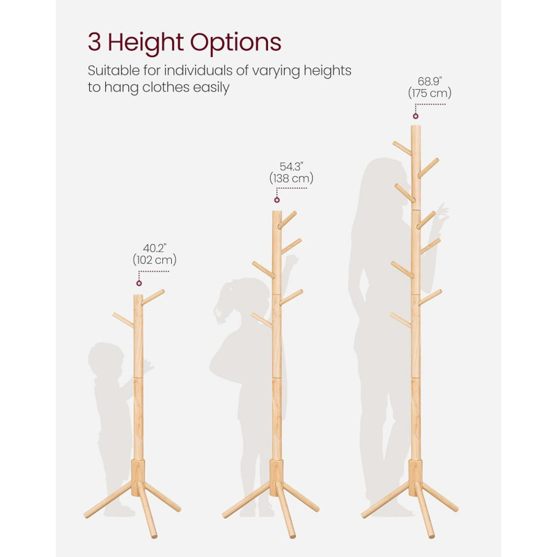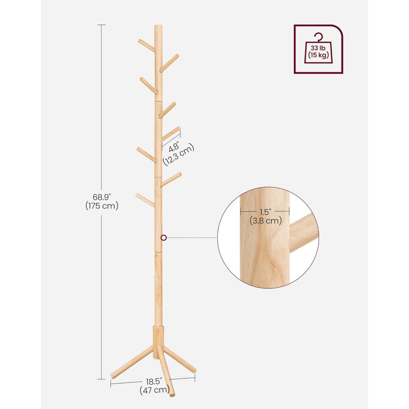 Scurta descriere: Cuierul VASAGLE cu forma de copac este o solutie eleganta si functionala pentru organizarea hainelor si accesoriilor in orice spatiu. Realizat din lemn masiv si finisat intr-o nuanta calda de natur, acest cuier ofera stabilitate prin baza sa triunghiulara si flexibilitate prin cele 3 inaltimi de montaj, potrivite atat pentru copii, cat si pentru adulti. Cu 8 carlige solide si montaj usor fara scule, este ideal pentru orice hol, dormitor sau birou.