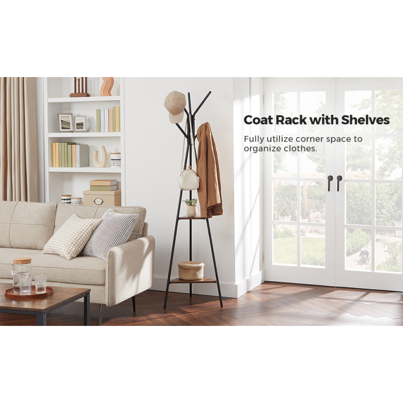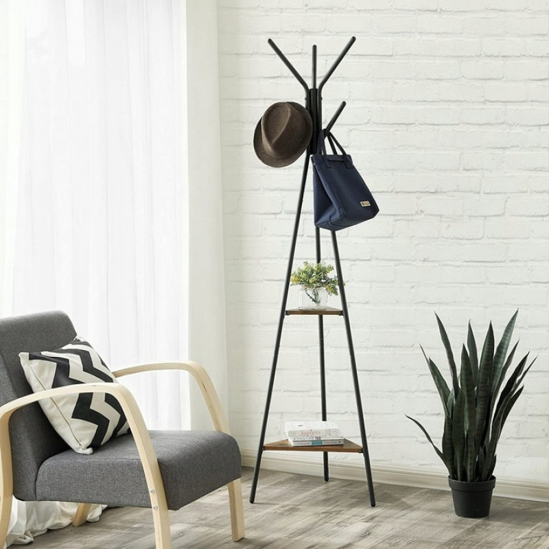 Max. sarcina pe raft: 10 kg Un cuier in picioare pentru jachete si accesorii, cu 6 carlige practice pentru agatat hainele si doua rafturi practice. Datorita designului sau simplu si lucrarii solide, raftul va fi o completare perfecta pentru hol sau sala de asteptare, camera de studiu sau birou. Capetele carligelor rotunjite sunt netede pentru a proteja hainele de zgarieturi atunci cand le agatati sau le dati jos. Stabilitatea este garantata de un cadru solid din otel si PAL gros. Baza triunghiulara va adauga stabilitate, fiecare carlig va suporta o greutate de 5 kg, fiecare raft va suporta 10 kg. Doua rafturi triunghiulare vor fi un loc ideal pentru micile decoratiuni. Un cuier minimalist iti va permite sa organizezi spatiul holului tau.