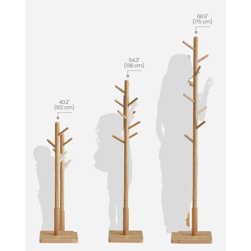 Scurta descriere Cuierul VASAGLE din lemn masiv, in forma de copac, adauga eleganta si functionalitate holului, dormitorului sau biroului. Cu 8 carlige si o baza patrata stabila, sustine pana la 25 kg si ofera trei optiuni de inaltime, adaptandu-se nevoilor fiecarui membru al familiei.