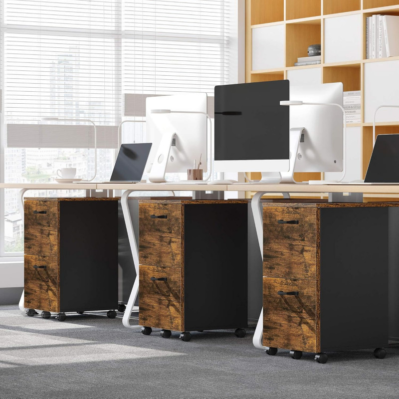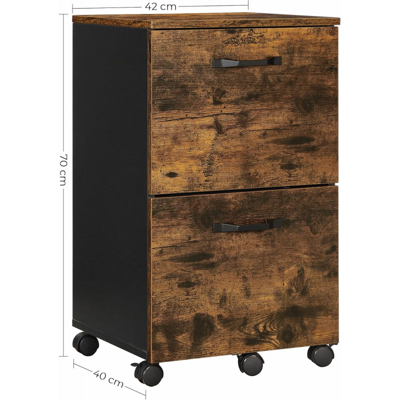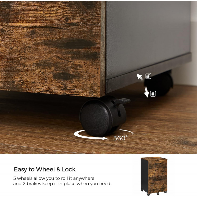 Scurta descriere Dulapul de birou VASAGLE OFC040 B01 aduce ordine si eleganta in spatiul de lucru. Cele 2 sertare spatioase cu sine pentru fisiere suspendate A4 ofera solutii practice de organizare, iar designul industrial in finisaj maro rustic/negru completeaza perfect orice birou modern. Mobilitatea este asigurata de cele 5 roti, inclusiv o roata centrala pentru stabilitate.