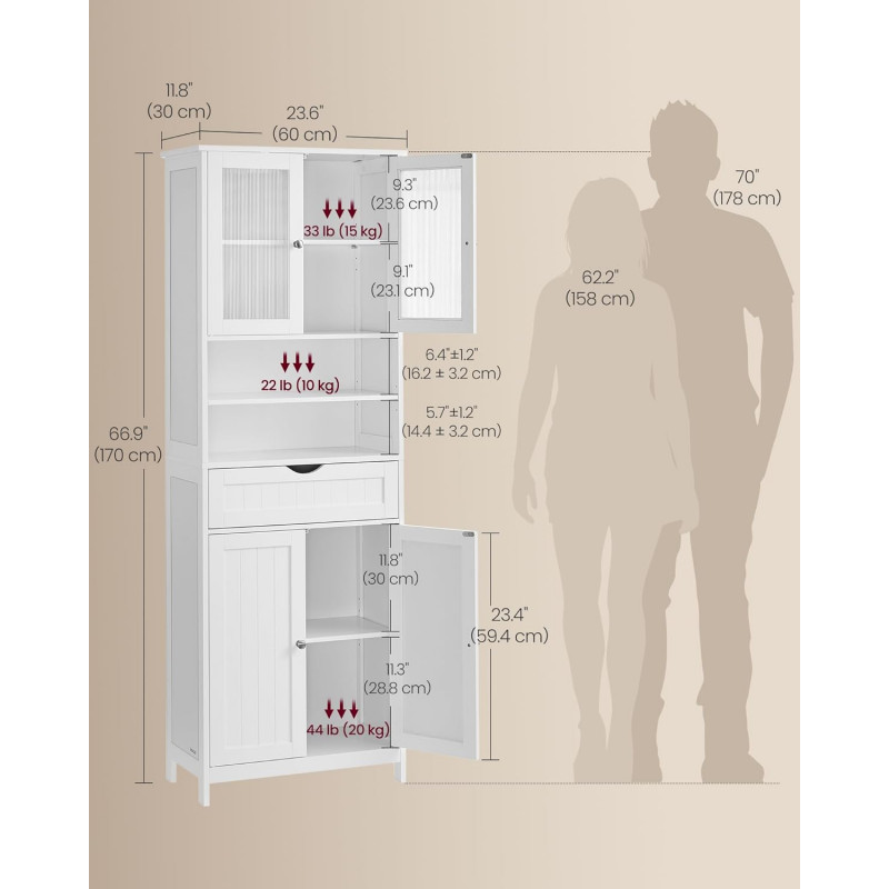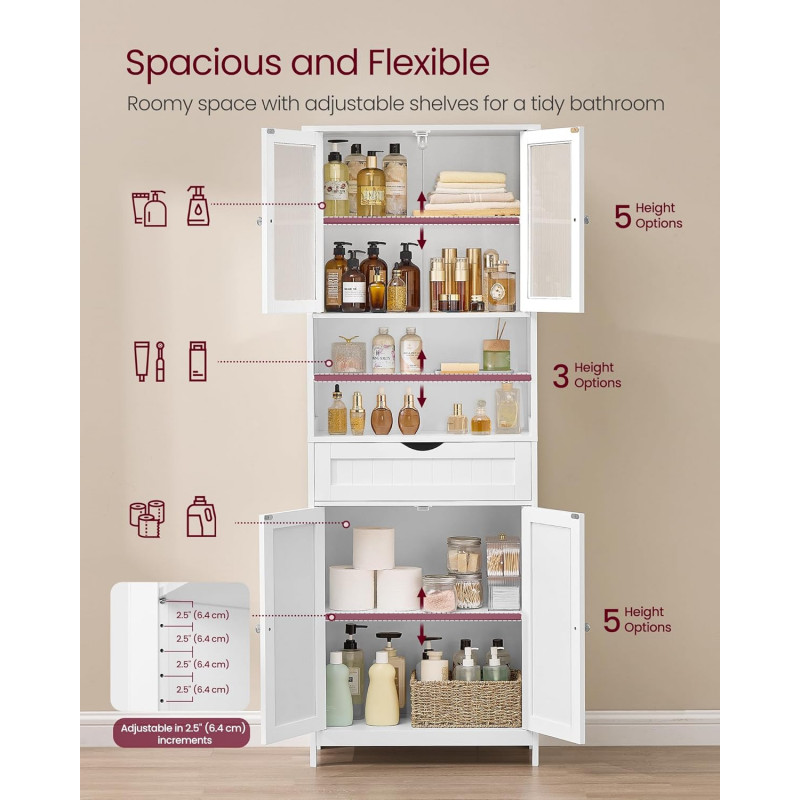 Scurta descriere: Acest dulap inalt pentru baie ofera spatiu generos de depozitare si un design elegant, potrivit pentru orice incapere. Compartimentarea variata si rafturile reglabile iti permit organizarea eficienta a obiectelor zilnice.