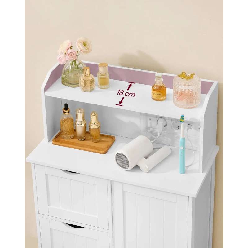 Scurta descriere: Dulap de baie functional, conceput pentru organizare eficienta si utilizare zilnica confortabila. Este echipat cu priza integrata si porturi USB pentru alimentarea dispozitivelor, iar compartimentarea inteligenta permite depozitarea discreta a produselor de baie. Rafturile reglabile si sertarele spatioase ofera flexibilitate maxima in organizare.