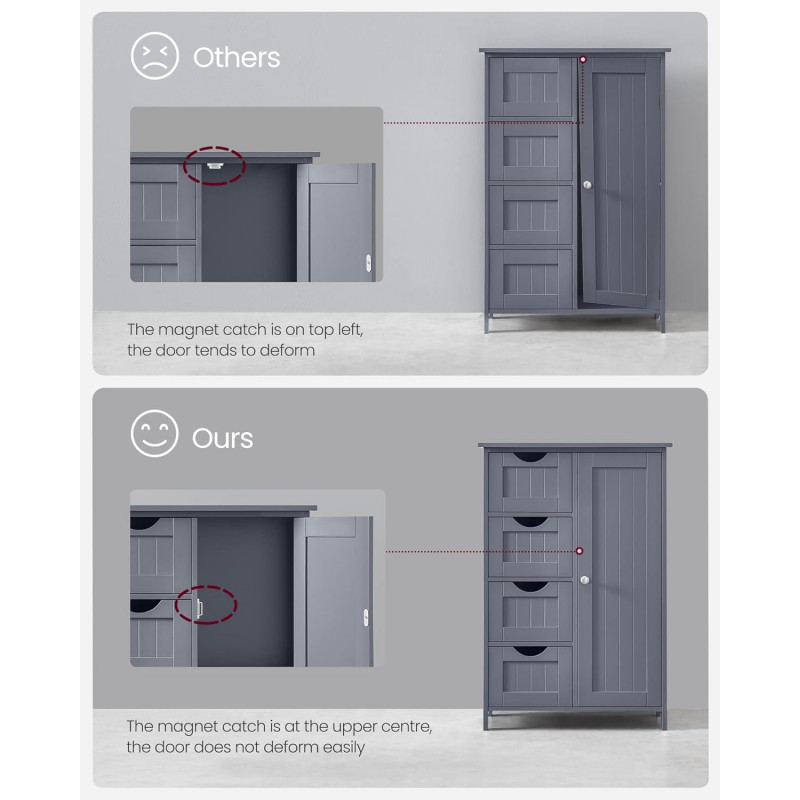Aspect frumos: griul elegant si designul minimalist creeaza un dulap simplu, dar in acelasi timp cu caracter, care poate fi usor integrat in locuinta dvs. - in baie, in camera de zi sau pe hol
