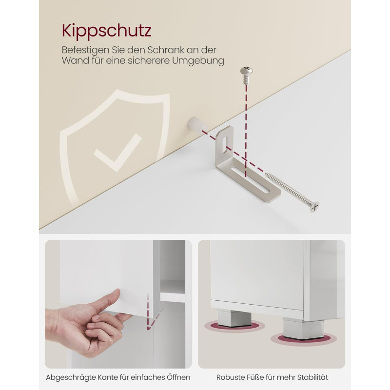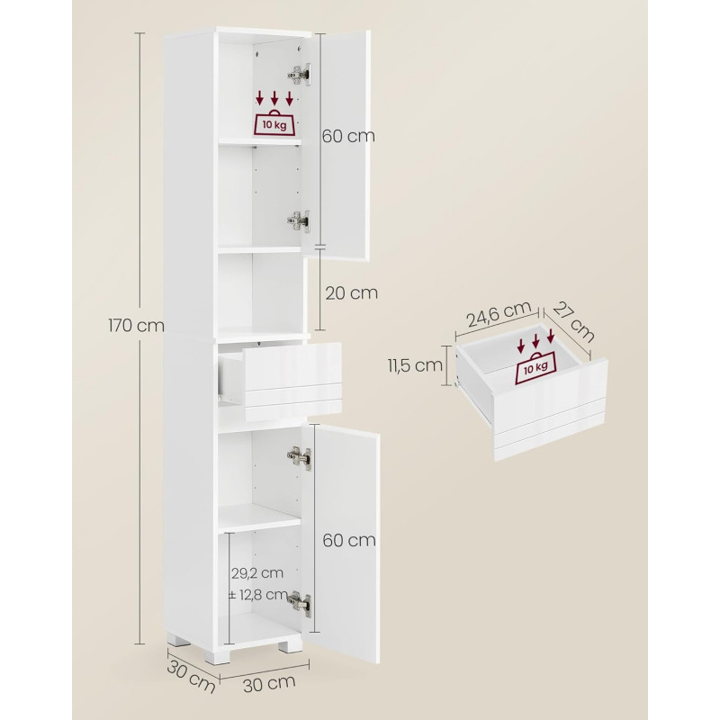 Capacitate de incarcare statica pe raft: 10 kg. Despre acest articol Acest dulap de baie ofera diferite optiuni de depozitare pentru a va pastra obiectele sortate.Usa fiecarui dulap poate fi atasata la stanga sau la dreapta; rafturile din spatele usilor sunt reglabile in inaltime pentru ustensile de diferite dimensiuni.Usor de montat si de curatat: Datorita pieselor marcate si a