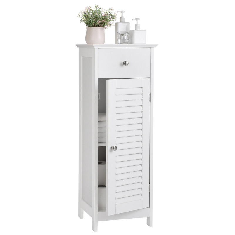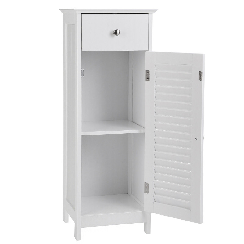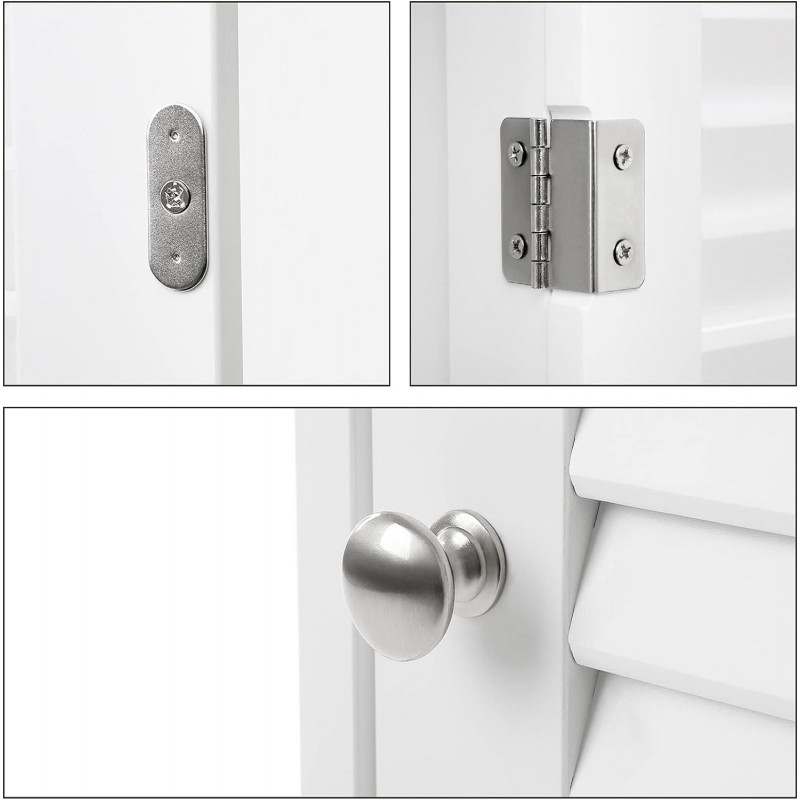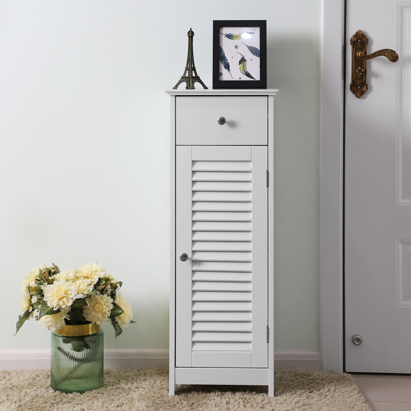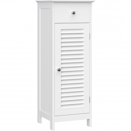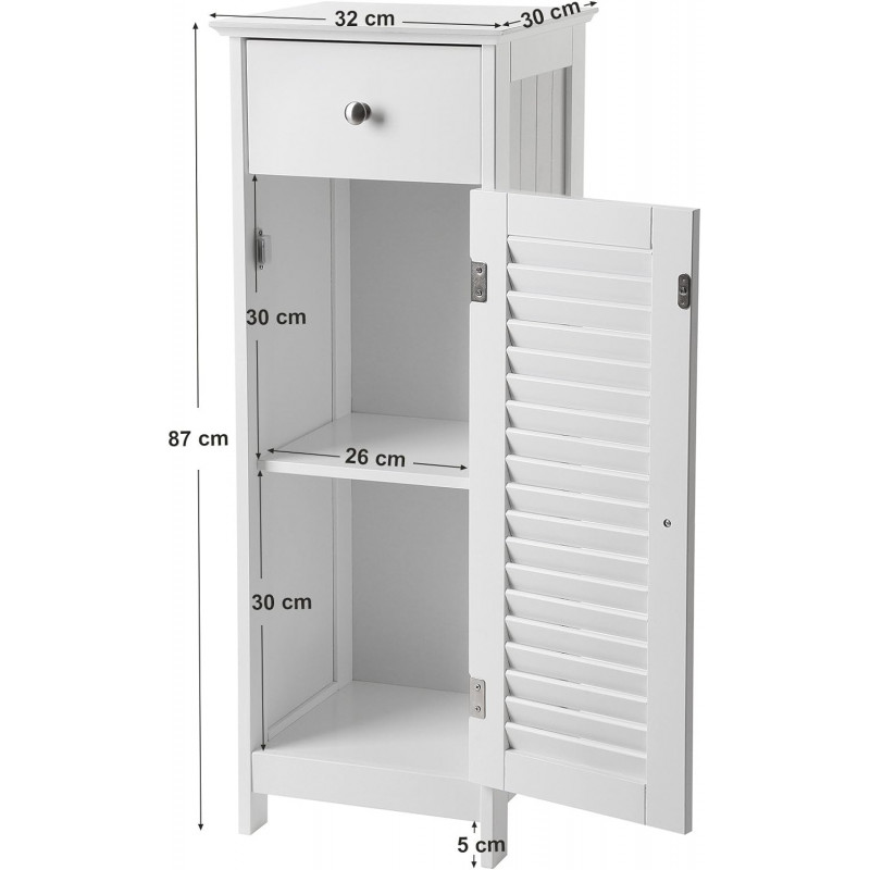 O nota de eleganta: linii curate, culoare alba, usa simpla cu lamele - combinatia acestor elemente creeaza un stil scandinav si adauga o nota eleganta acestui dulap de baie.Usor de intretinut si durabil: suprafata dulapului de baie este usor de curatat cu o carpa moale. Panourile solide din MDF confera acestei piese de mobilier o durata de viata lunga.Spatios, dar care economiseste spatiu: 1 sertar, 2 compartimente in spatele usii dulapului - acest dulap ingust (30 x 32 x 87 cm, D/l/h) va ofera mult spatiu de depozitare, dar ocupa putin spatiu.Stabil si sigur: acest dulap lateral poate fi fixat ferm de perete cu ajutorul protectiei la inclinare incluse, ceea ce asigura un mediu sigur pentru familia dvs.Utilizare flexibila: acest dulap de depozitare se potriveste in diferite incaperi. Asezati acest dulap in baie, in camera de zi, in dormitor sau in camera copiilor pentru a crea un spatiu de depozitare suplimentar