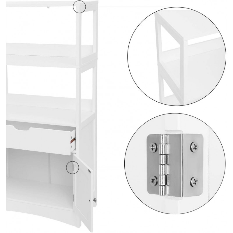 Versatilitatea este cheia: Glamour si spatios, acest dulap este conceput pentru a fi multifunctional. Asezati-l in baie, in bucatarie sau in camera de zi pentru a aduce organizare si stil inauntru - acest dulap nu va va dezamagi!Casa pentru toate necesitatile din baie: 2x rafturi deschise, sertarul si dulapul de jos se combina pentru a va oferi spatiu generos pentru toate lucrurile esentiale din baie - fara obiecte lasate in urma.Lemnul prelucrat de inalta calitate, o suprafata lacuita usor de curatat si un kit anti-inclinare au ca rezultat un dulap stabil, solid si durabil - utilizarea de lunga durata este asigurata.Asamblare fara stres: Cu piesele numerotate furnizate, asamblarea nu a fost niciodata atat de rapida si usoara - pur si simplu strangeti suruburile cu ajutorul