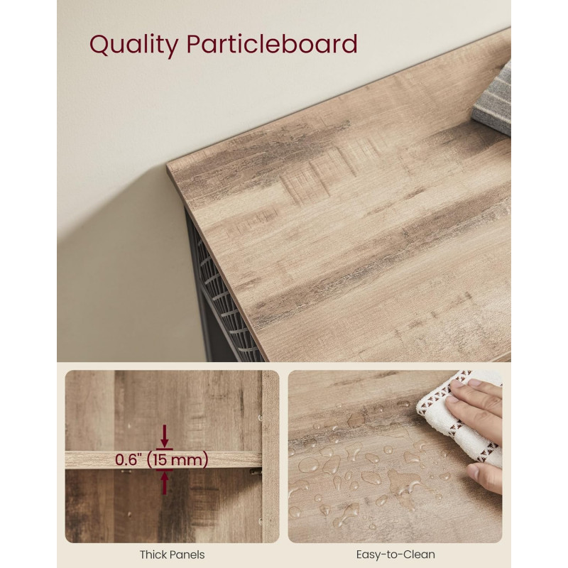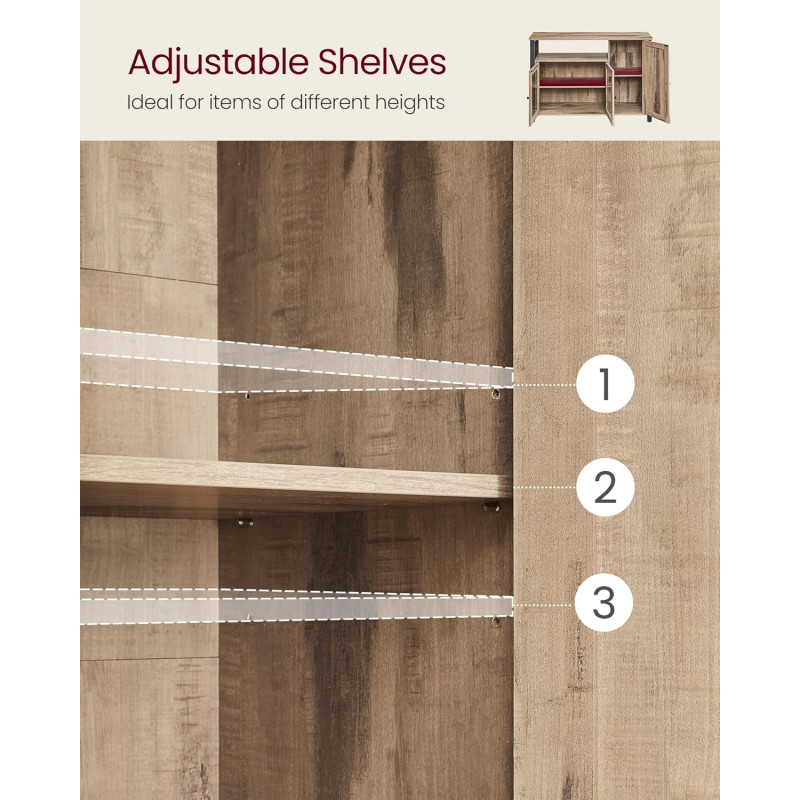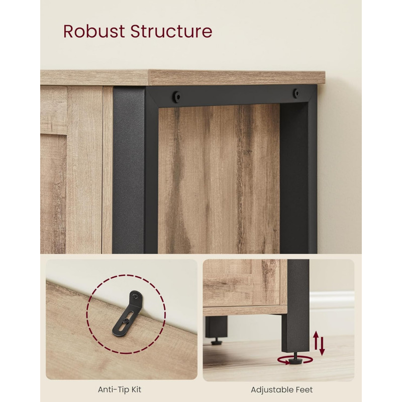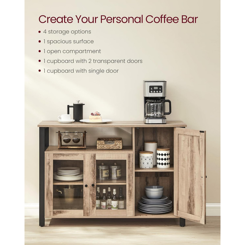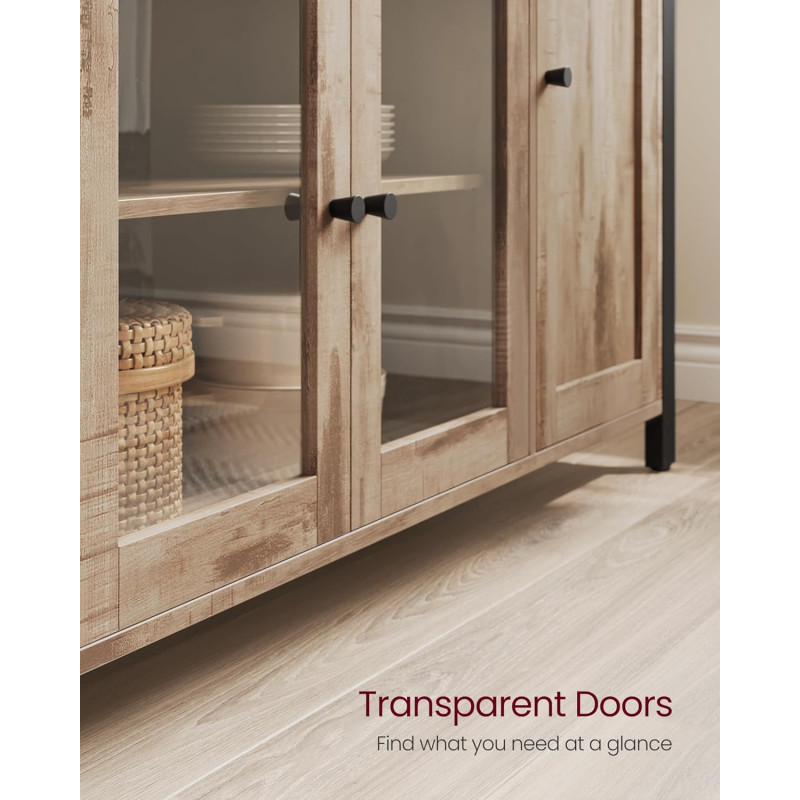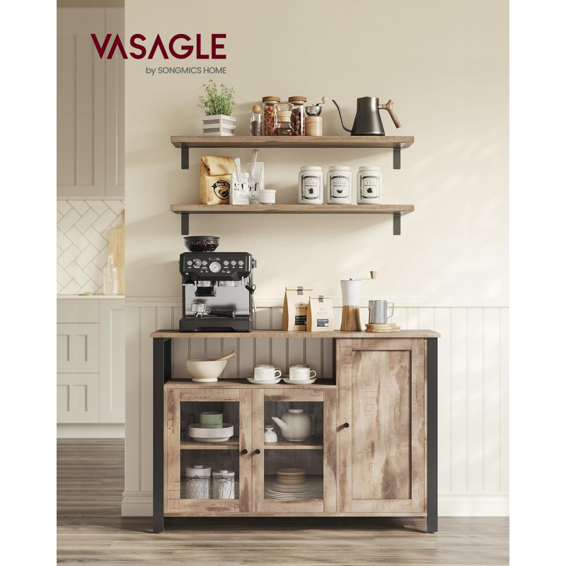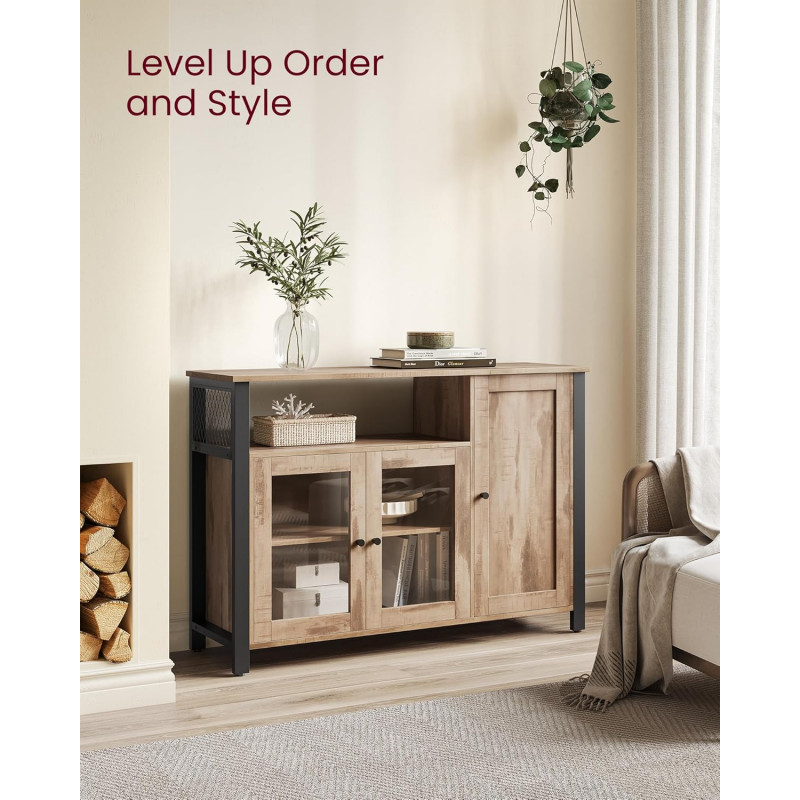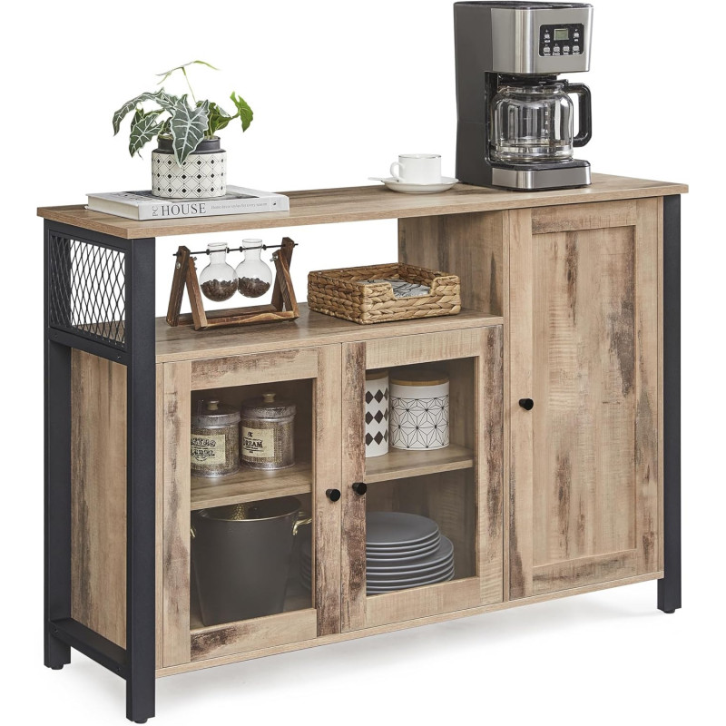 Scurta descriere Comoda VASAGLE cu 3 usi este o piesa practica si eleganta, perfecta pentru organizarea eficienta a spatiului. Designul industrial imbina armonios lemnul maro camel cu cadrul metalic negru, iar compartimentarea inteligenta iti permite sa depozitezi usor vesela, pahare sau alte obiecte esentiale.