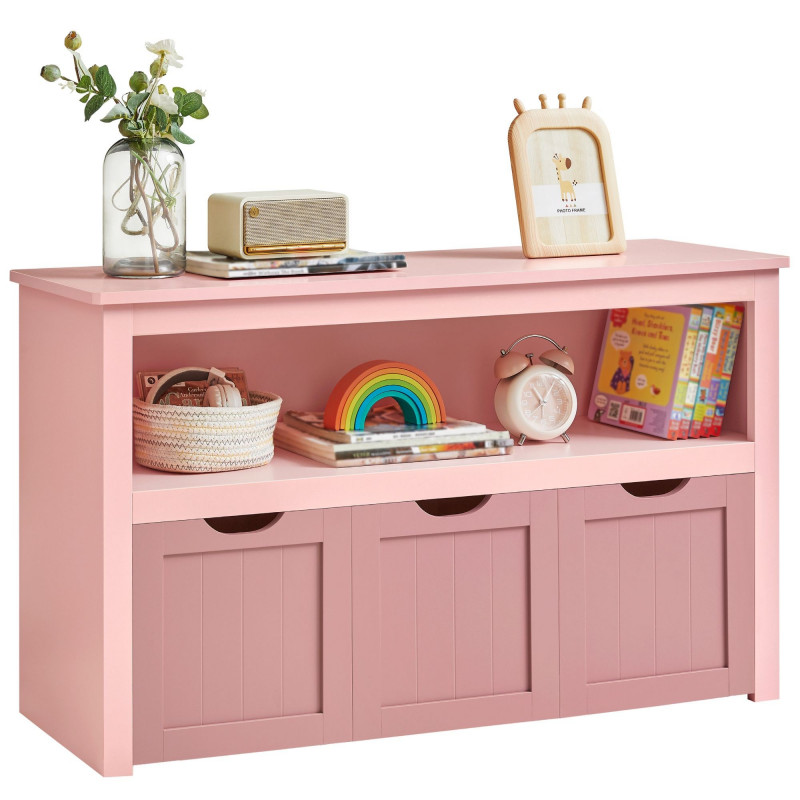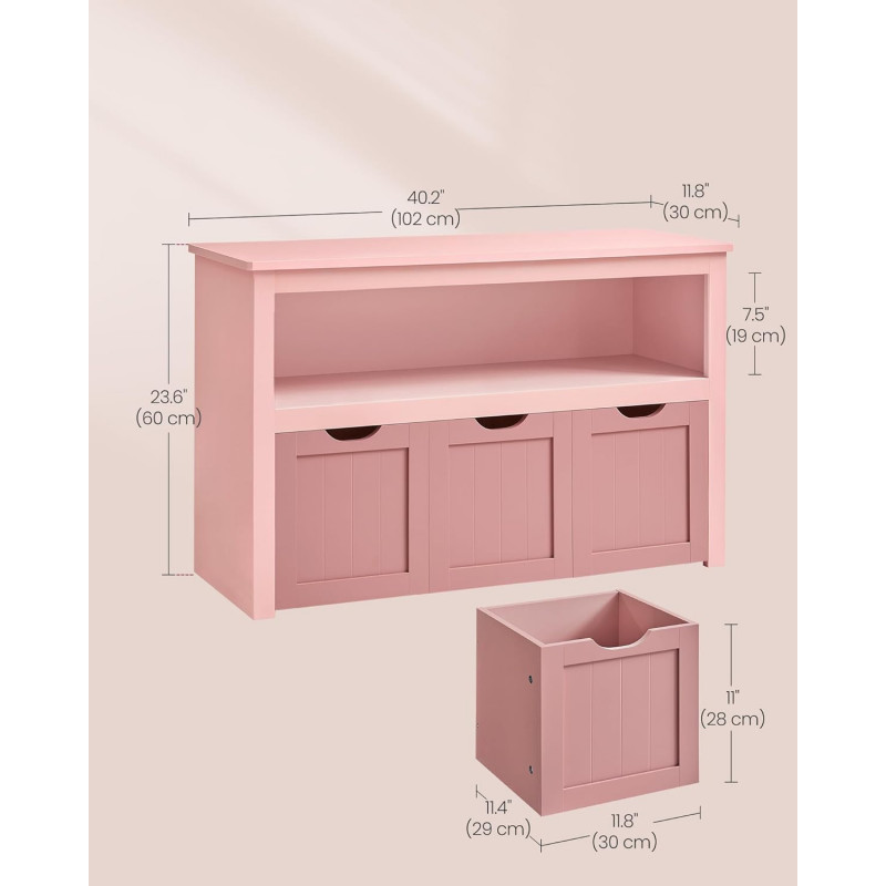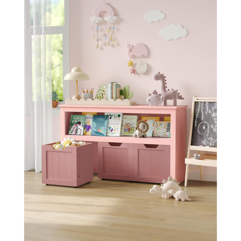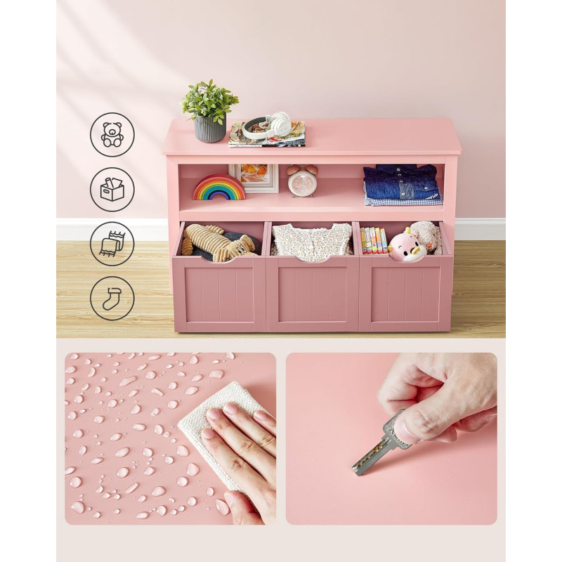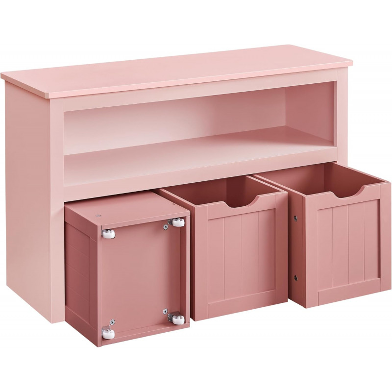 Design inteligent: O zona de depozitare in partea de sus, un compartiment deschis, 3 cutii (29 x 30 x 28 cm) in partea de jos. Acest dulap pentru jucarii ofera suficient spatiu pentru toate: mingi, papusi, blocuri de constructie si carti cu imagini pot fi frumos sortate si depozitate convenabil.