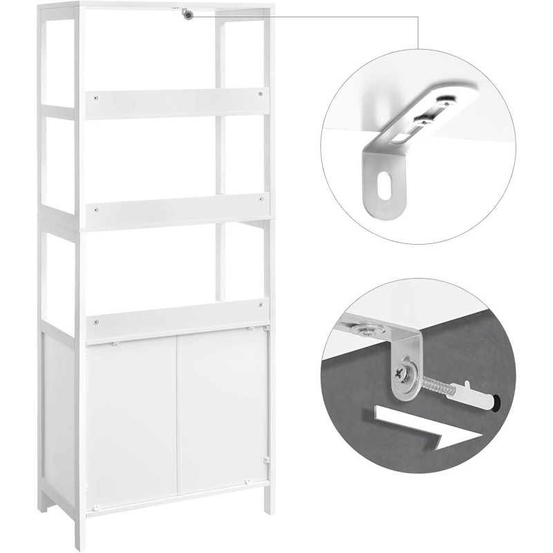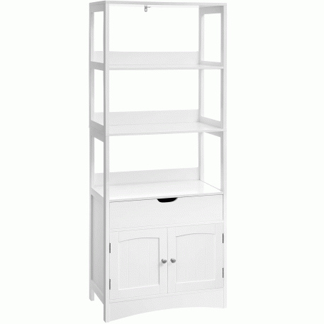 Scurta descriere: Acest dulap inalt de la VASAGLE combina functionalitatea cu un design simplu si elegant. Cele 3 rafturi deschise ofera acces rapid la obiectele uzuale, sertarul si dulapul inferior sunt ideale pentru depozitarea discreta a consumabilelor sau accesoriilor. Construit din MDF durabil si prevazut cu sistem de prindere in perete, este o piesa versatila potrivita pentru baie, bucatarie, hol sau birou.