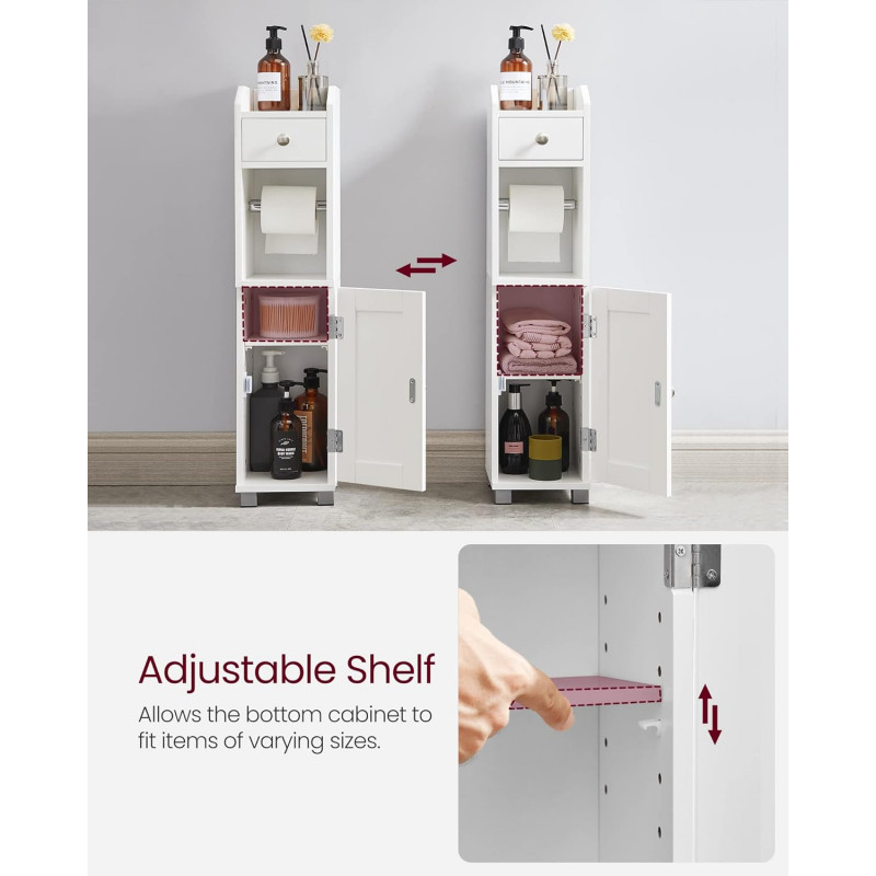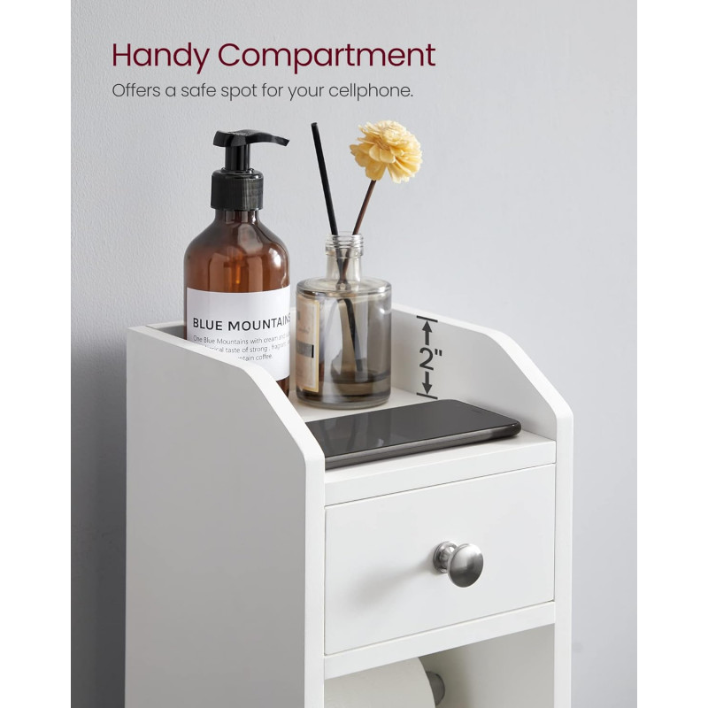 Sectiunea superioara convenabila: Compartimentul superior al acestui dulap pentru role de hartie igienica ofera un loc sigur si practic pentru a va parca telefonul mobil pentru un minut si o mica planta in ghiveci pentru a va infrumuseta baia.