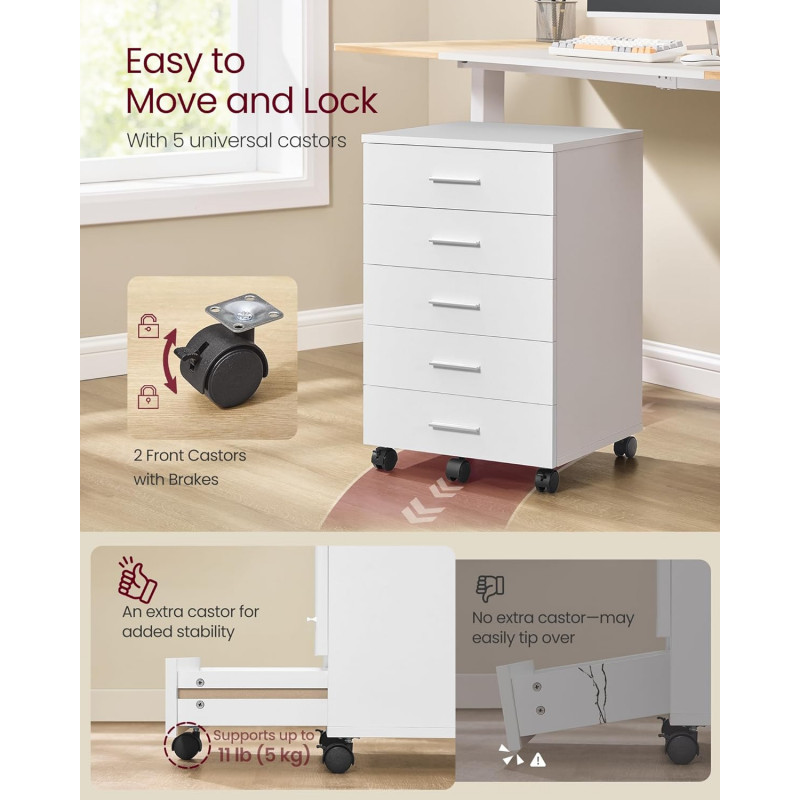 Scurta descriere: Dulap mobil cu cinci sertare, conceput pentru organizarea eficienta a documentelor si accesoriilor de birou. Dimensiunea compacta permite pozitionarea sub majoritatea birourilor, iar rotile pivotante asigura mobilitate usoara si stabilitate la utilizare.