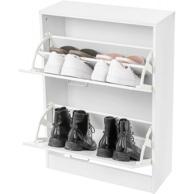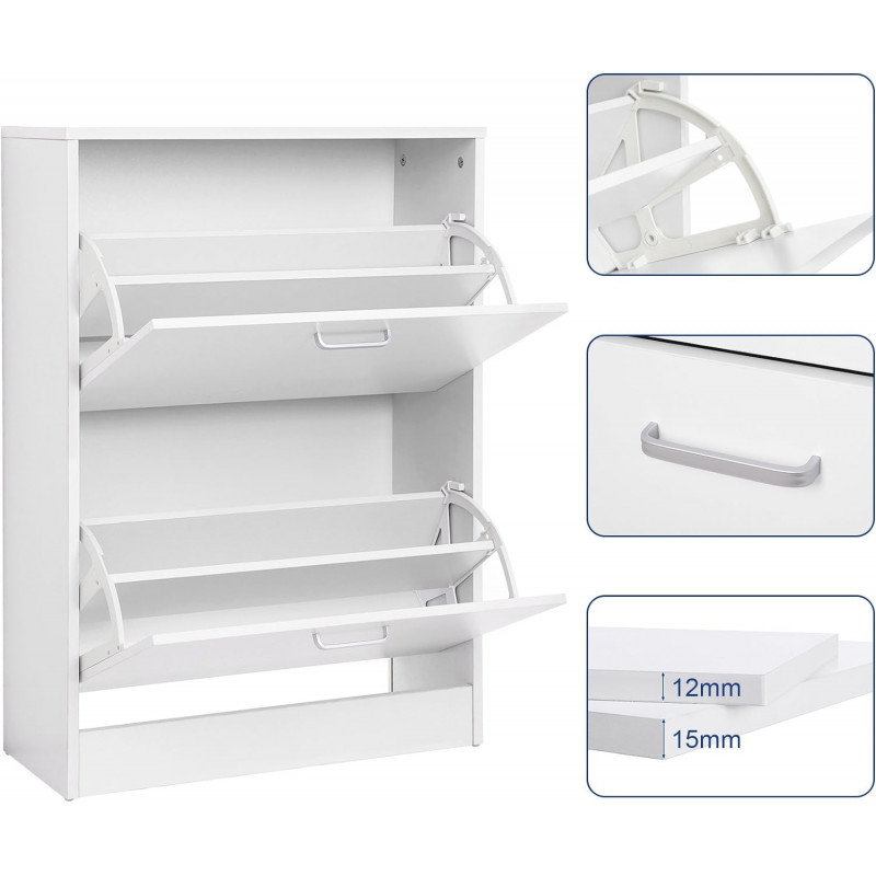 Dimensiunile produsului: 24 D x 60 W x 83,5 H centimetri Despre acest articol Intrarea este cartea de vizita a casei dvs. Cu un aspect modern si manere metalice pe usile rabatabile, acest dulap de pantofi cu elemente armonice lasa oaspetilor tai o impresie buna; grosimea sa de 24 cm nu ocupa spatiul tau valoros in sufragerie sau pe hol.Proiectat cu sertare duble, unitatea de depozitare a pantofilor foloseste pe deplin spatiul vertical pentru a tine 12 perechi de pantofi de dama sau 8 pantofi de barbati; botine si tocuri inalte? Nicio problema, doar scoateti separatorul reglabil din fiecare sertar!Structura solida este conectata prin suruburi 3 in 1, care elimina abaterile si fisurile cauzate de suruburile autofiletante si ii asigura rezistenta pentru anii urmatori; panoul din spate si kitul anti-rasturnare pentru atasarea dulapului pe perete imbunatatesc stabilitatea generala.Asamblare fara griji: instructiunile ilustrate clare si piesele numerotate va ofera un asamblare fara griji; cu un surub de rezerva suplimentar, acest dulap pentru pantofi se gandeste deja la confortul tau inainte de a fi instalat.Un dulap de pantofi cu 2 sertare care tine pantofii dezordonati departe de vedere pentru un living sau hol bine organizat si o rutina de dimineata lina care va permite sa va gasiti pantofii intr-o clipita.