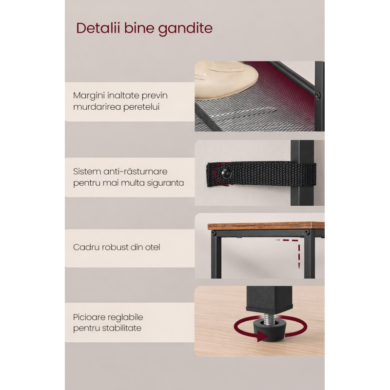 Caracteristici principale: Spatiu generos pentru pana la 20 de perechi de pantofi