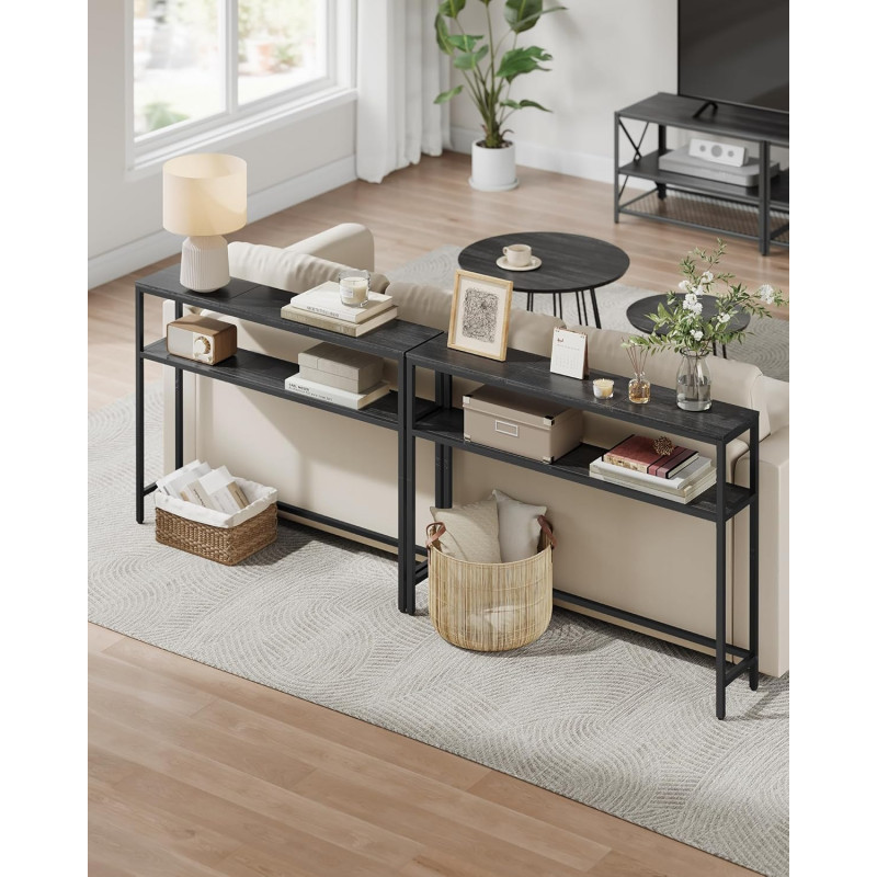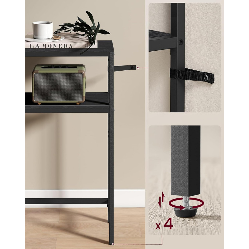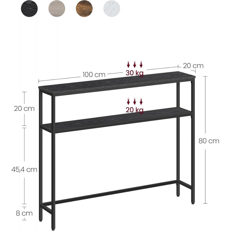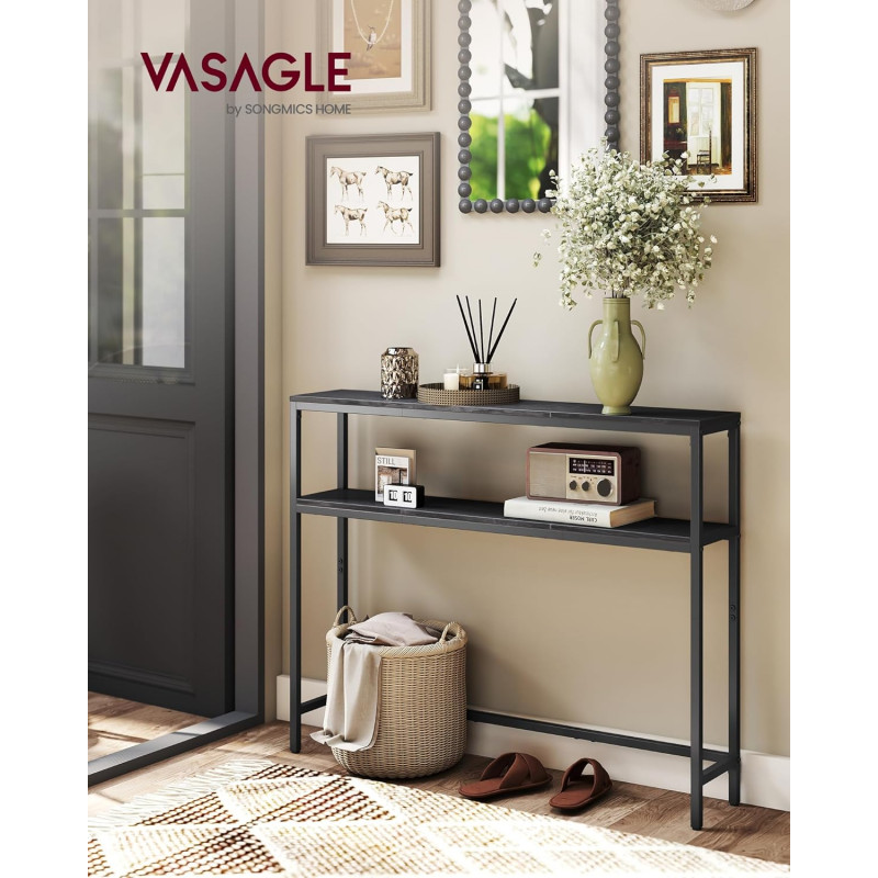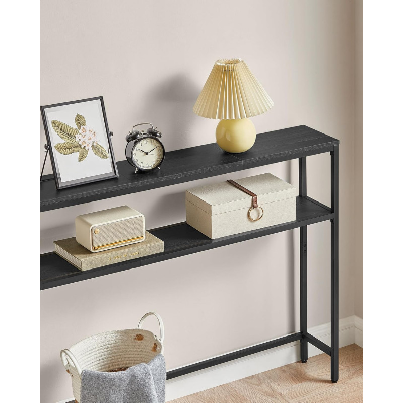 Scurta descriere: Aceasta consola VASAGLE este alegerea perfecta pentru spatii inguste, dar functionale. Cu un design modern si finisaj gri carbune combinat cu negru mat, aduce un plus de eleganta holului, dormitorului sau sufrageriei.