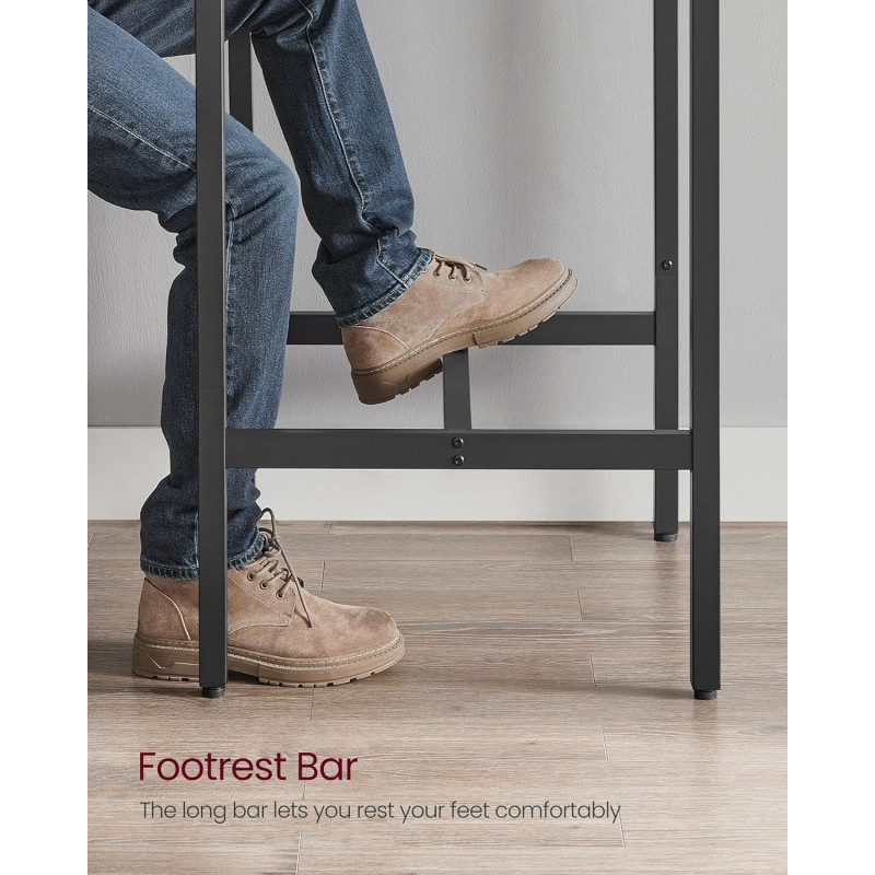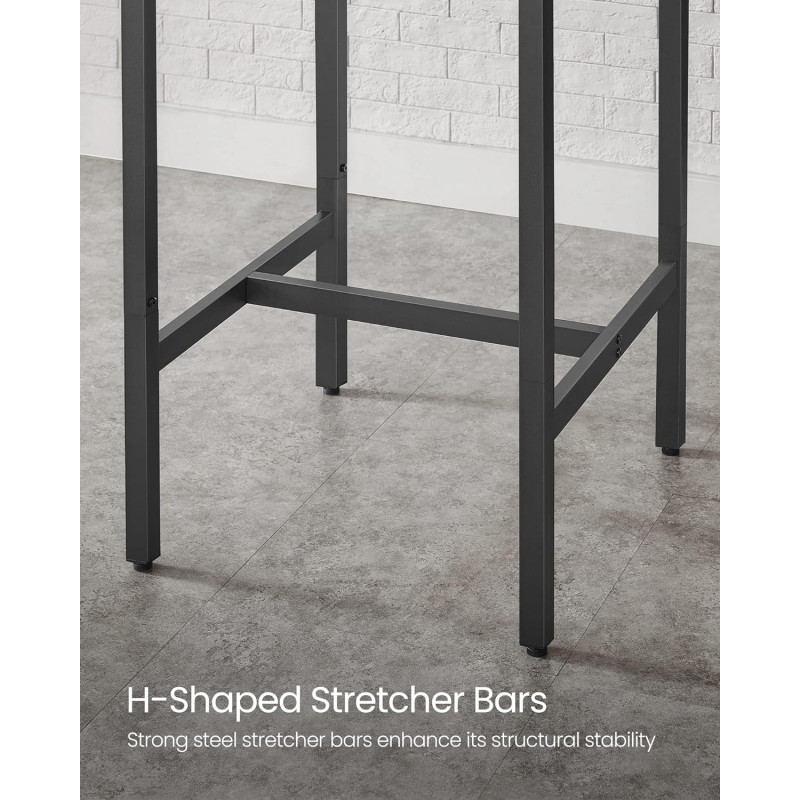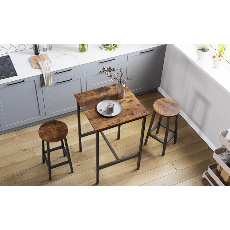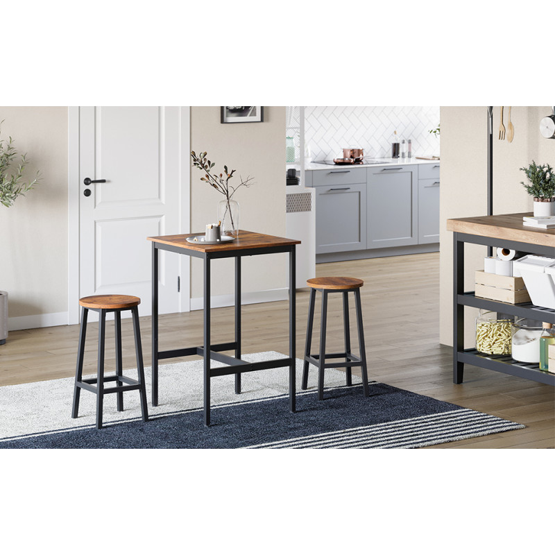 Comfort suplimentar: Bara lunga de dedesubt ofera un loc confortabil pentru a va odihni picioarele atunci cand sunteti asezat la masa; Picioarele reglabile elimina oscilatiile pe podele usor neuniforme si previn zgarierea podelei.Stilul industrial cu un design curat adauga o nota rustica spatiului tau de locuit; o pereche de scaune de bar (nu sunt incluse) de aproximativ 61-66 cm inaltime se vor potrivi bine sub masa si vor permite o asezare confortabila