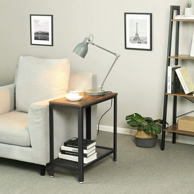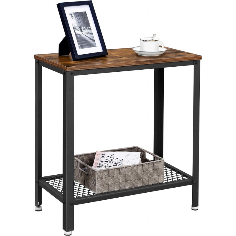 Continutul pachetului: Despre acest articol Un cadru din otel negru se intalneste cu materialul din lemn in stil rustic. Adaugati o carte buna si gustari la aceasta masuta laterala - si veti crea atmosfera perfecta pentru a va relaxa dupa o zi aglomerata, cu putin efort.Folositi masuta laterala cu raft din plasa de 30 cm latime in diverse incaperi. Aranjati-o in sufragerie, birou sau hol pentru a va echipa casa cu plante verzi si rame de tablouri. Sau, ce ziceti de o noptiera langa patul dvs.Amestecul solid de otel rezistent si lemn de inginerie rezistent confera noptierei un grad ridicat de stabilitate. Incarcati suprafata cu obiecte de pana la 20 kg, iar raftul din plasa cu pana la 10 kg.Datorita numarului gestionabil de piese individuale, aceasta masa de sufragerie compacta poate fi montata in doar cateva minute