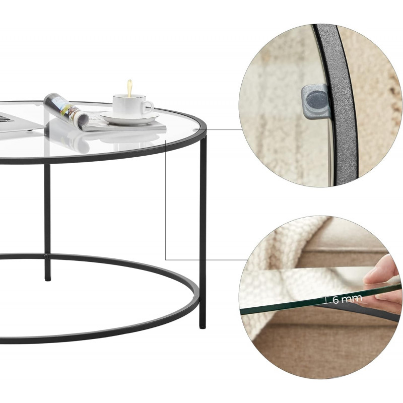 Marca: VASAGLE Despre acest articol Cadru metalic negru, blat din sticla transparenta - impreuna cele doua elemente formeaza o combinatie fascinanta care arata sic si arata stil si clasa