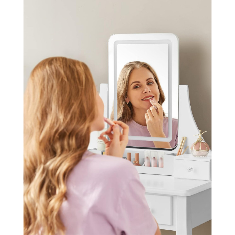 Asamblare usoara: Aceasta masa de toaleta este preasamblata, trebuie doar sa atasati picioarele mesei, picioarele taburetului si oglinda. Piesele marcate si