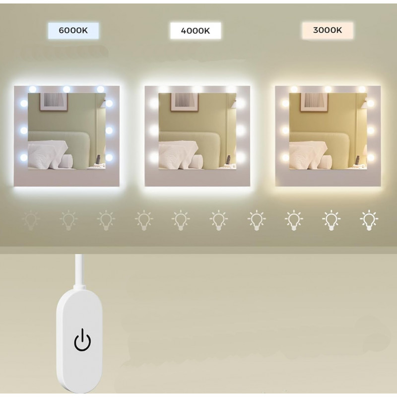 Oglinda mare cu 9 becuri LED reglabile