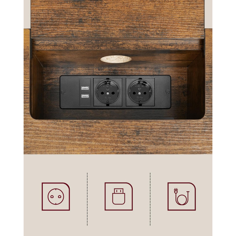 Scurta descriere VASAGLE Consola ingusta cu prize integrate este o solutie practica pentru hol sau living. Dispune de 2 prize AC si 2 porturi USB, permitand incarcarea simultana a dispozitivelor. Compartimentul dedicat ascunde prelungitorul, iar orificiul pentru cabluri mentine blatul ordonat si organizat.