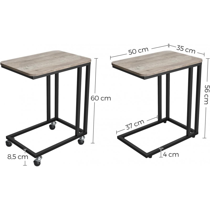 Scurta descriere Masuta laterala VASAGLE imbina designul industrial cu functionalitatea practica. Structura C-shape permite introducerea sub pat sau canapea, iar rotile detasabile faciliteaza deplasarea. Blatul rezistent din PAL si cadrul metalic suporta pana la 25 kg, fiind potrivita pentru laptop, cafea sau mic dejun in pat.