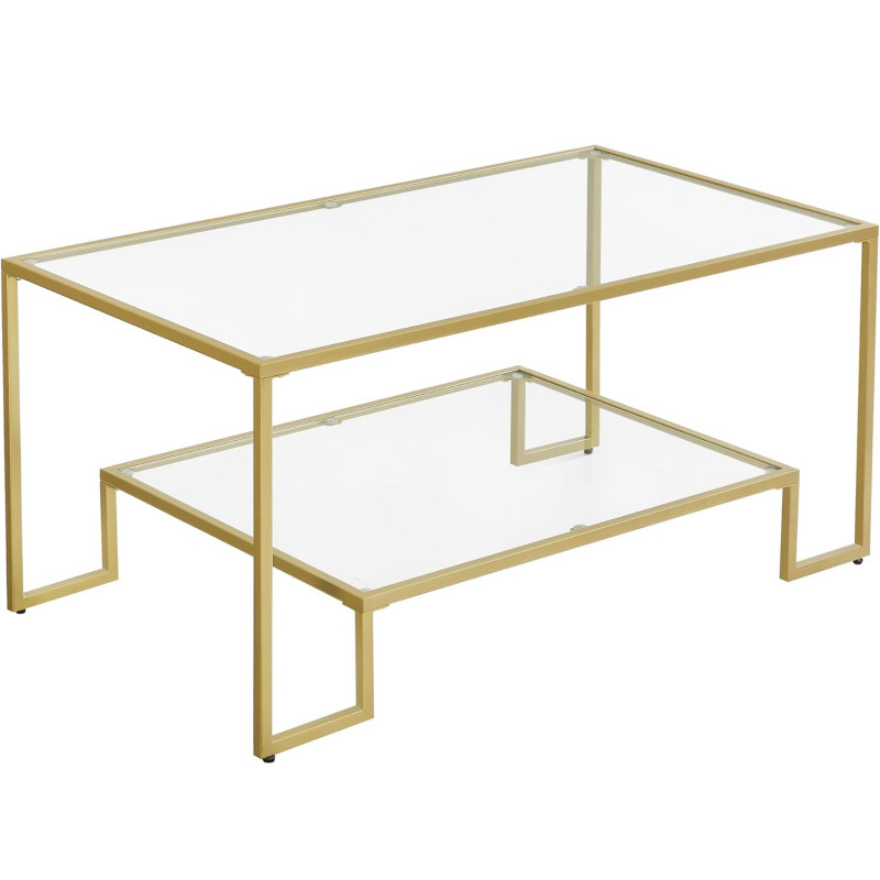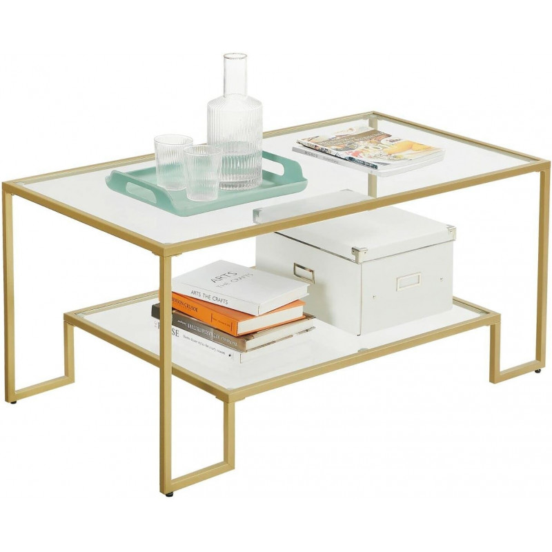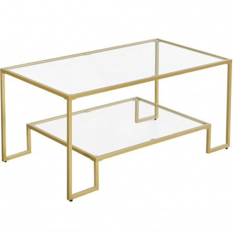 Capacitate totala de incarcare statica: 30 kg Despre acest articol Oferiti camerei dvs. de zi aceasta masa de cafea eleganta. Datorita ramei metalice de culoare aurie si rafturilor din sticla transparenta, aceasta piesa de mobilier va pune in valoare locuinta.Datorita cadrului solid din otel si a sticlei temperate de 6 mm, aceasta masa de living ofera obiectelor dvs. un suport stabil.Structura simpla, piese marcate,