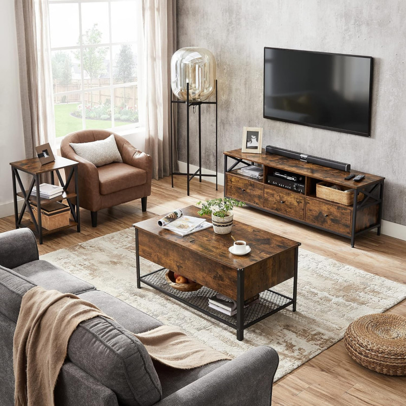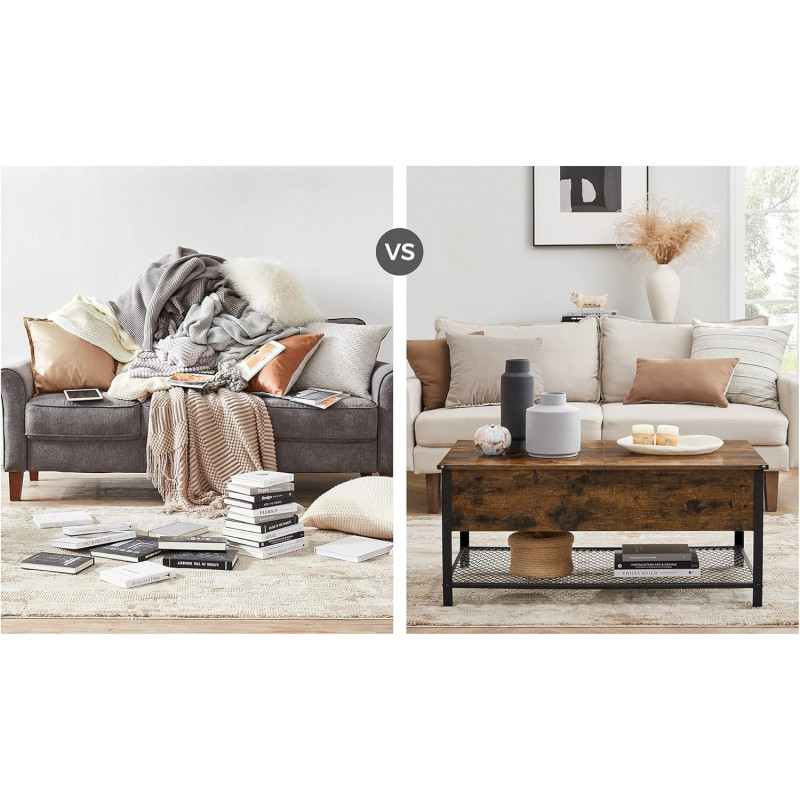 Marca: VASAGLE Despre acest articol Spatiu pentru afisare, ascundere si organizare: bauturi si gustari pe raftul mare de sus; paturi, perne, jocuri de societate in compartimentul inchis; E loc pentru orice pe aceasta masuta de cafea.
