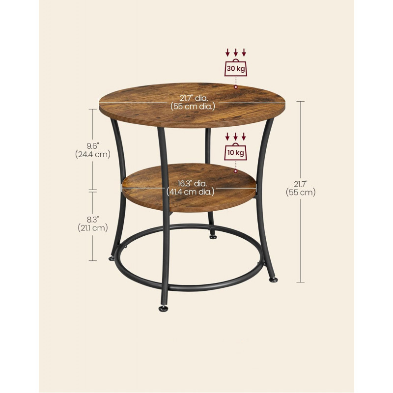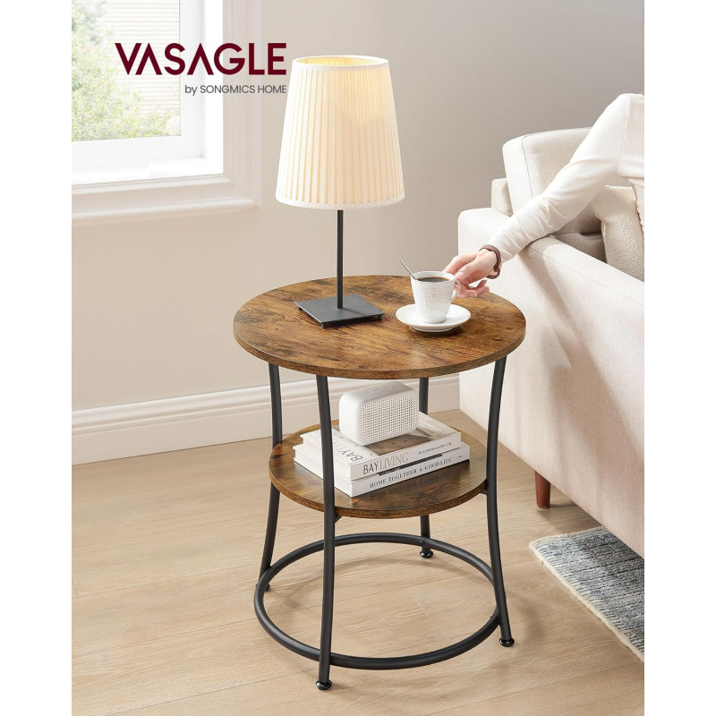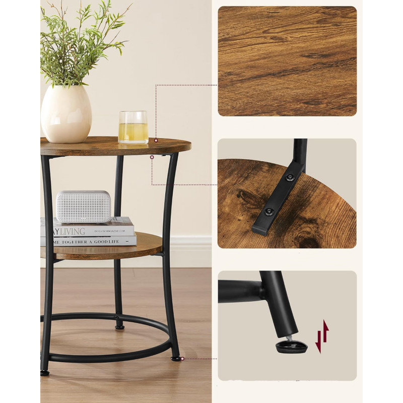 Capacitate max. de incarcare statica de pe raftul de jos: 10 kg Despre acest articol Masa laterala cu diametrul de 55 cm are picioare stabile din otel, care sunt intarite suplimentar de tuburi rotunde. 2 rafturi rotunde, fin lucrate in maro rustic, un cadru din otel negru si numeroase scopuri - in ansamblu, aceasta face o masa laterala simpla si totusi extraordinara de clasa extra.Asamblare in timp record: Au disparut zilele in care petreceai ore intregi aranjand o piesa de mobilier. Datorita structurii simple, numarului gestionabil de piese individuale si