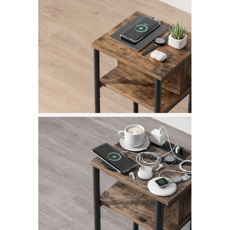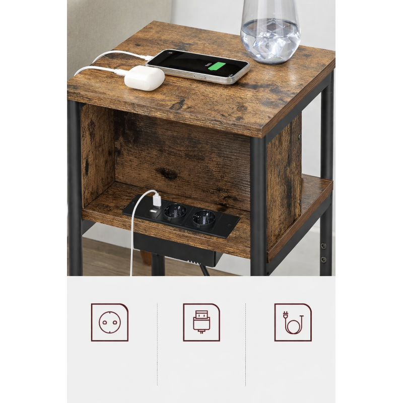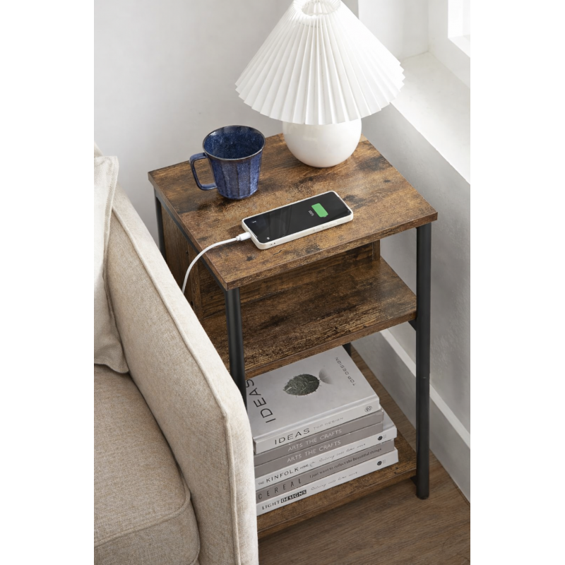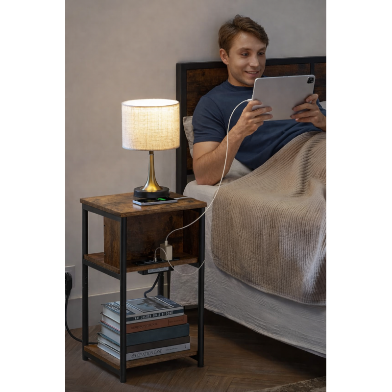 Scurta descriere Noptiera VASAGLE cu priza integrata este solutia practica pentru dormitor sau living. Ofera 2 prize AC si 2 porturi USB, astfel incat iti poti incarca telefonul, tableta sau alte dispozitive direct langa pat. Designul slim economiseste spatiu, iar cele 3 rafturi permit organizarea eficienta a obiectelor esentiale.