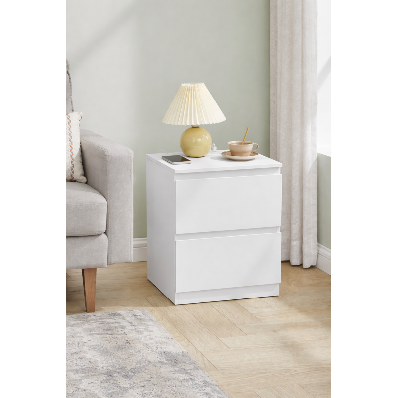 Scurta descriere VASAGLE Kailyn este o noptiera moderna, cu design minimalist si sertare fara manere, ideala pentru dormitoare luminoase si ordonate. Priza integrata cu 2 porturi AC si 2 USB-A iti permite sa incarci telefonul, tableta sau veioza direct de langa pat. Cele doua sertare incapatoare ofera spatiu generos pentru obiectele personale, mentinand un aspect curat si organizat.