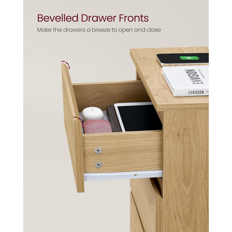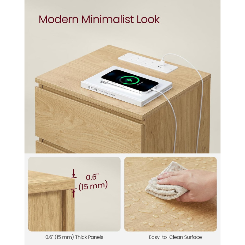 Scurta descriere Noptiera VASAGLE din colectia KAILYN imbina designul modern cu functionalitatea practica. Dotata cu statie de incarcare integrata, iti permite sa ai toate dispozitivele la indemana, in timp ce sertarele ofera spatiu generos pentru organizare. Culoarea vibranta aduce un plus de stil oricarei incaperi.