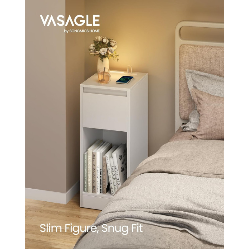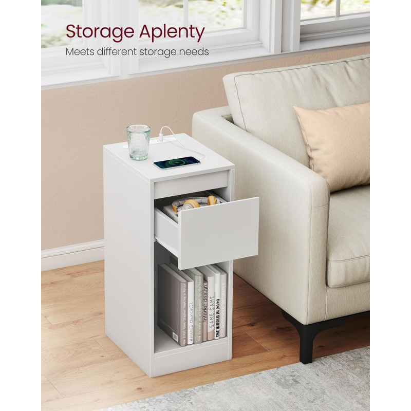 Scurta descriere: Aceasta noptiera ingusta este solutia practica pentru amenajarea spatiilor mici. Ofera spatiu de depozitare bine organizat prin sertarul inchis si compartimentul deschis, iar statia de incarcare integrata iti permite sa ai dispozitivele mereu la indemana. Iluminarea LED integrata se activeaza prin atingere si permite ajustarea intensitatii luminii. Lumina calda este potrivita pentru relaxare si pentru utilizare confortabila pe timpul noptii.