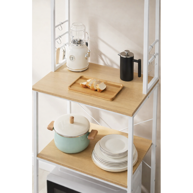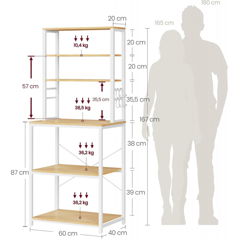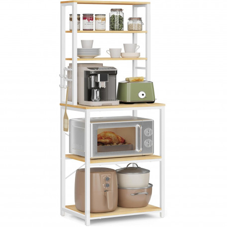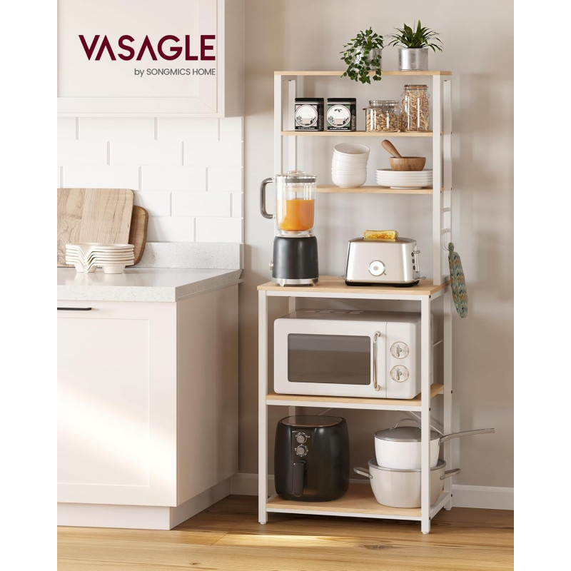 Scurta descriere Etajera de bucatarie VASAGLE este solutia ideala pentru organizarea eficienta a spatiului, chiar si in bucatarii mici. Cu 6 rafturi si 6 carlige, ofera loc suficient pentru electrocasnice, ustensile si accesorii. Designul industrial modern si structura rezistenta o fac potrivita pentru utilizare zilnica.