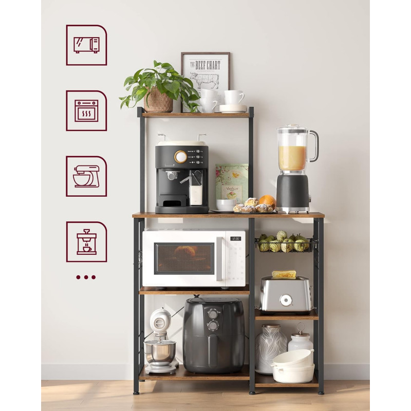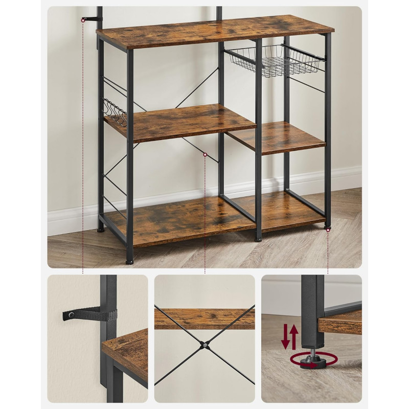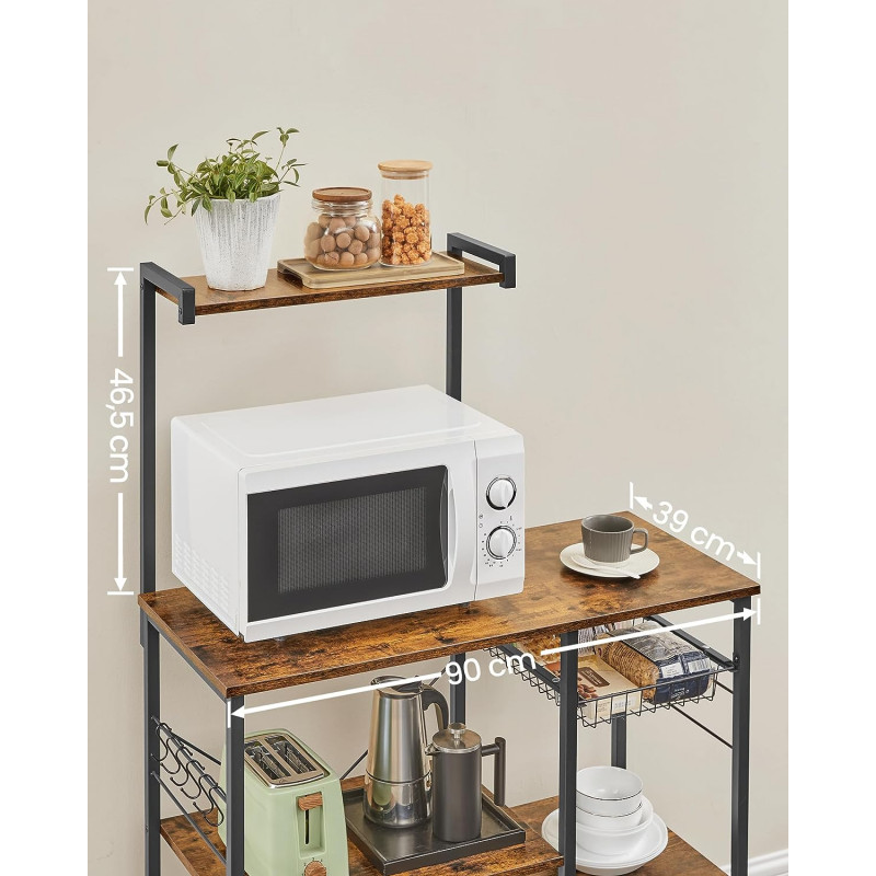 Stil elegant: Daca vrei sa adaugi stil bucatariei, acest raft pentru brutarie care amesteca maro rustic si negru mat este solutia perfecta care adauga un stil fermecator.