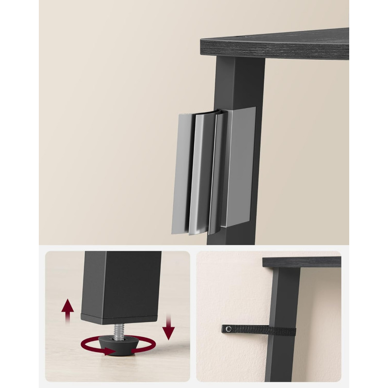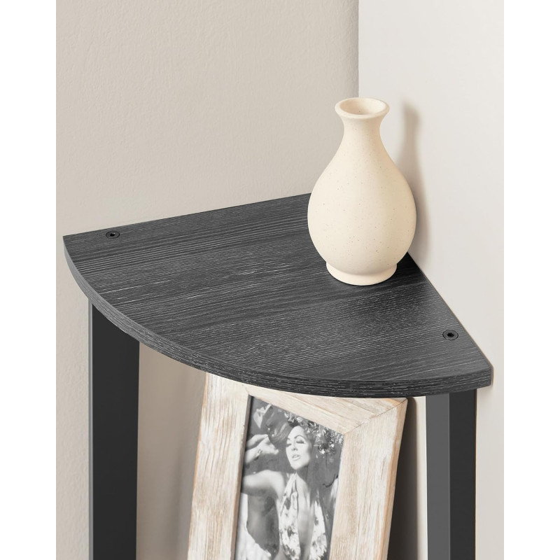 instructiunilor clare, pieselor etichetate si gaurilor pre-perforate in tuburile metalice pentru montarea fara efort a suruburilor, veti monta aceasta biblioteca de colt in cel mai scurt timp Design stabil si sigur Cu designul sau cu 3 picioare si un picior din spate reglabil, acest raft de colt este stabil pe podele usor inegale si se potriveste perfect pe orice perete. In plus, un kit anti-inclinare ofera un plus de siguranta Serveste un stil bun Invitati vibratiile industriale inauntru cu rafturile sale gri carbune si cadrul metalic negru; aceasta unitate de rafturi de colt va da un lift de stil oricarei case care cauta decorare sau renovare