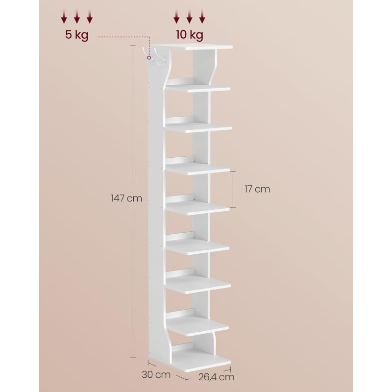 Scurta descriere: Etajera pantofi verticala, ingusta, conceputa pentru spatii restranse precum holuri, colturi sau dressinguri. Ofera depozitare eficienta pe inaltime, mentinand podeaua libera si ordinea vizibila.
