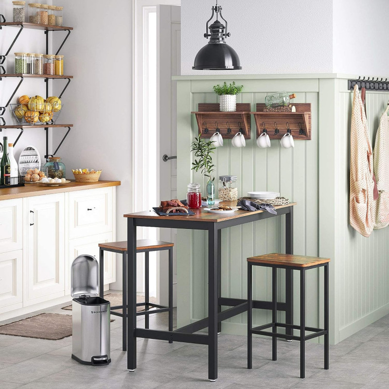 Stil: Industrial Despre acest articol Panoul de particule maro rustic si metalul clasic negru aduc un nou condiment bucatariei sau sufrageriei tale. Oaspetii tai vor adora gustul industrial al acestor doua scaune.Aceste scaune din PAL premium si otel robust au rezistenta (incarcare de 120 kg fiecare) pentru a va servi cafeaua si croissantele de dimineata ani de zile. Aceste taburete de 40 x 30 x 65 cm aluneca usor sub masa pentru a economisi spatiu.Stati pe aceste taburete cu suport pentru picioare pentru a va calma picioarele dupa o zi lunga de la munca, beti o bautura cu prietenii, jucati-va cu copiii sau mancati pizza cu vecinii in confort.Doar 20 de minute: atat timp iti va lua sa asamblati aceste doua scaune. Acesta adauga farmec, usurinta si confort interiorului tau intr-un timp scurt.