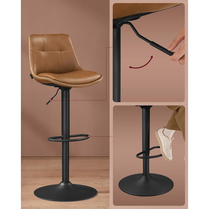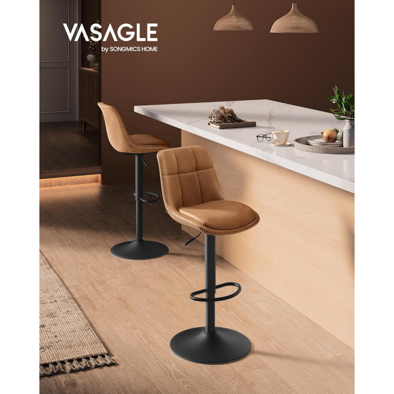 Scurta descriere Setul de 2 scaune de bar VASAGLE ofera confort si flexibilitate datorita functiei de reglare pe inaltime si rotatie completa. Tapiteria din PU si designul ergonomic cu spatar asigura o experienta placuta, iar cadrul metalic stabil garanteaza durabilitate in utilizare zilnica.