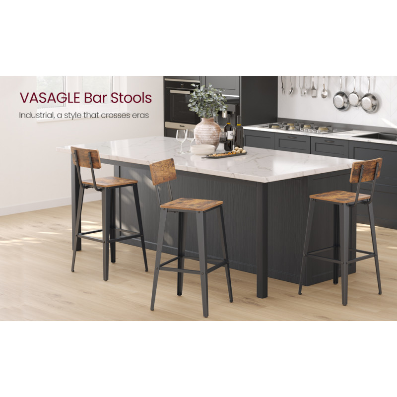 Max. Capacitatea de greutate statica per scaun: 136 kg Despre acest articol Placa de particule de inalta calitate, picioarele metalice solide si un suport pentru picioare confera scaunului un nivel ridicat de stabilitate - fiecare scaun poate sustine pana la 136 kg; placutele pentru picioare fac ca scaunul sa fie antiderapant si sigur pentru a sta pe el.Scaunul de 34 x 34 cm, suportul pentru picioare grijuliu si spatarul ergonomic (unghi de inclinare: 103°) ofera o pozitie de sedere confortabila.Panourile calde de culoare maro rustic, cadrul clasic negru si picioarele exterioare ofera acestui taburet de bar un aspect industrial pentru a condimenta bucataria sau zona de luat masa.Urmati