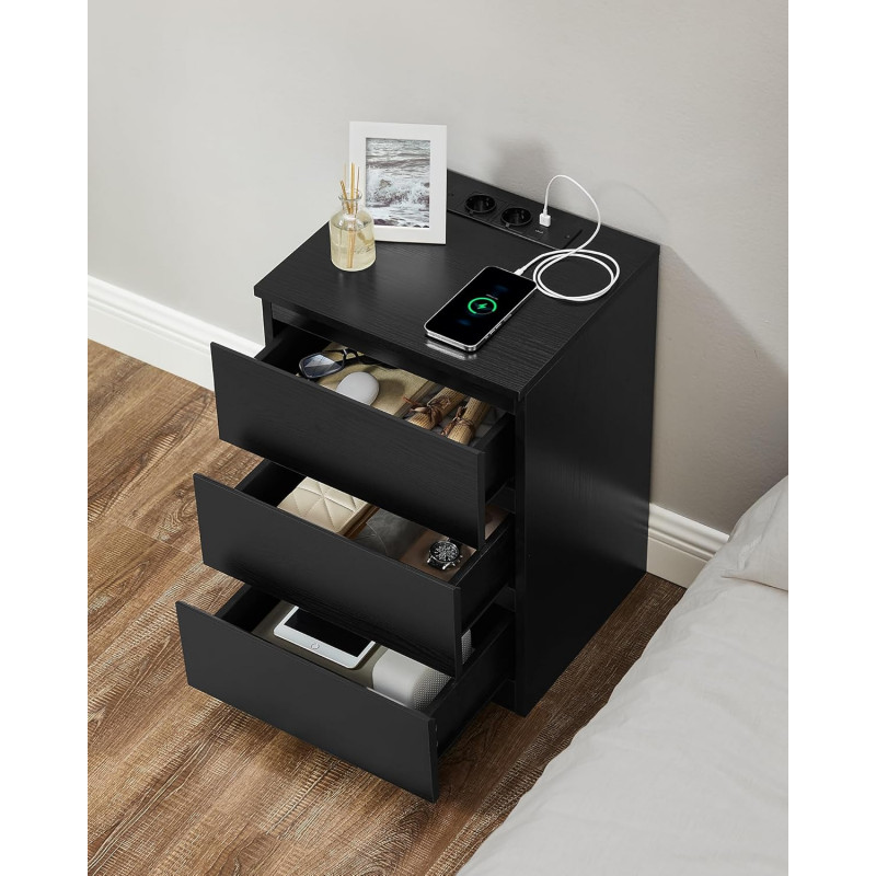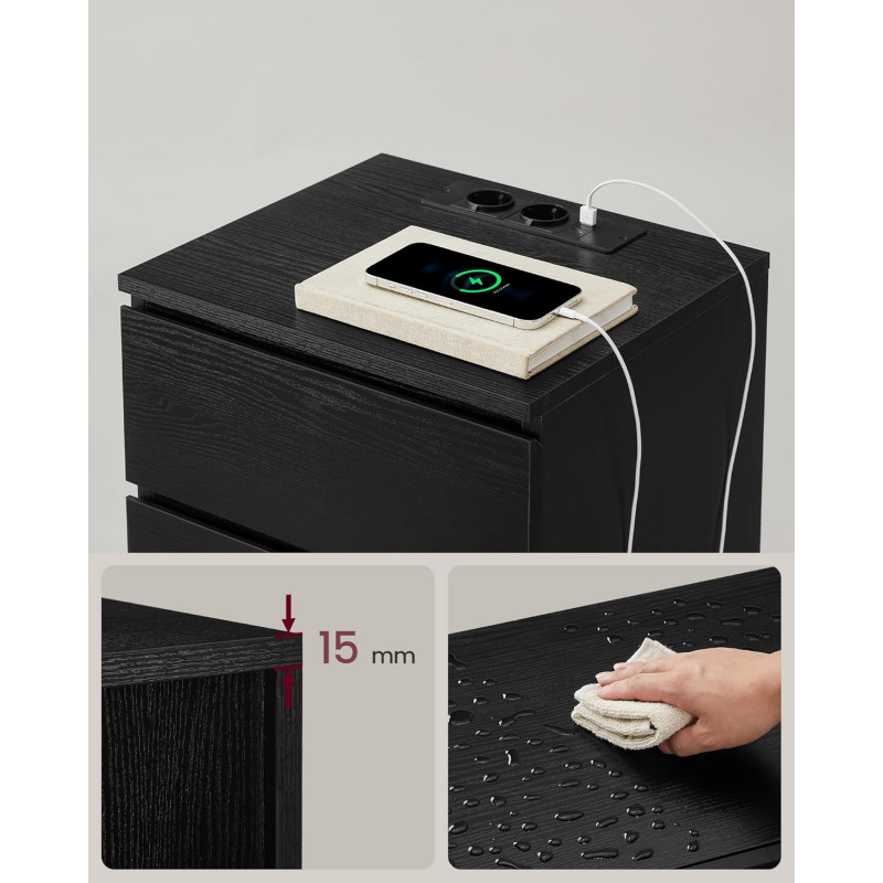 Eleganta moderna: Cu designul sau minimalist, culoarea neagra si manerele invizibile, aceasta noptiera eleganta se integreaza perfect in decorul dvs. Farmecul sau contemporan pune in valoare atat dormitoarele, cat si camerele de zi Durabila Aceasta noptiera cu banda de alimentare este fabricata din PAL de inalta calitate, cu grosimea de 15 mm. Fiecare masa este suficient de robusta si rezistenta pentru a sustine pana la 62kg si va fi alaturi de dvs. pentru multi ani