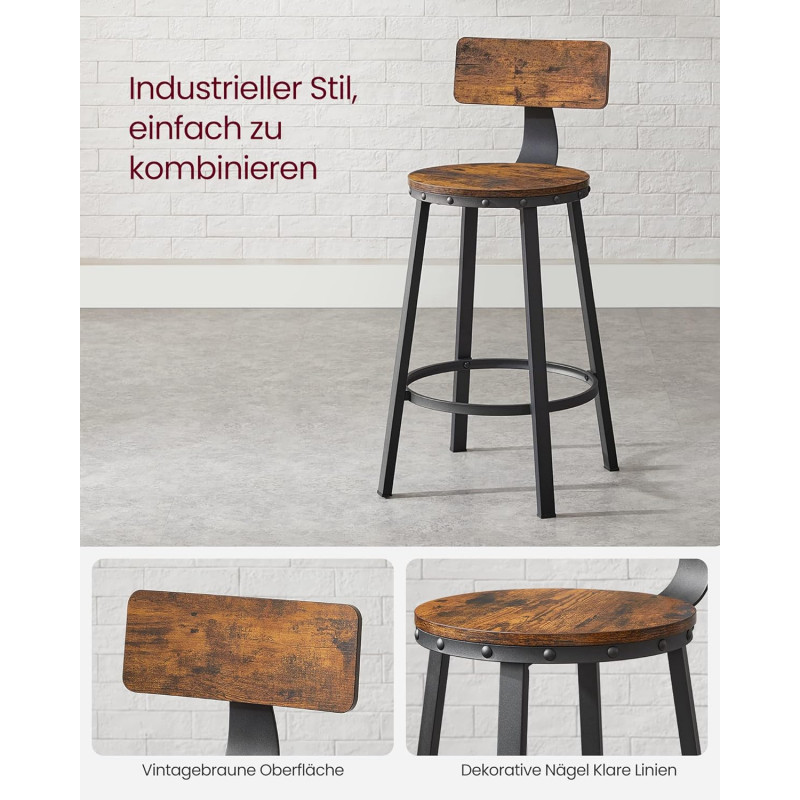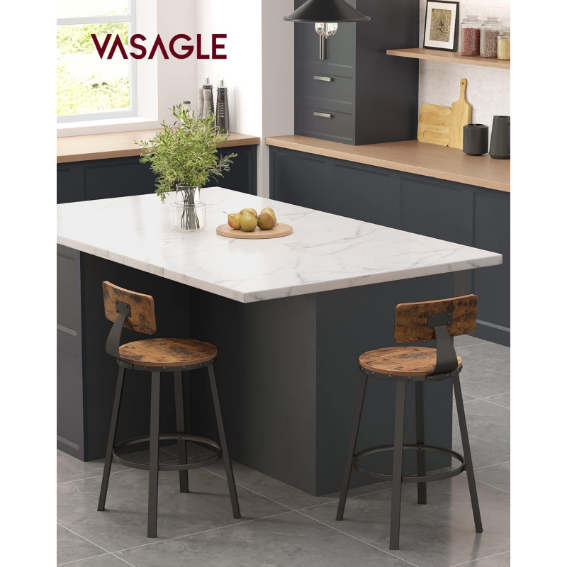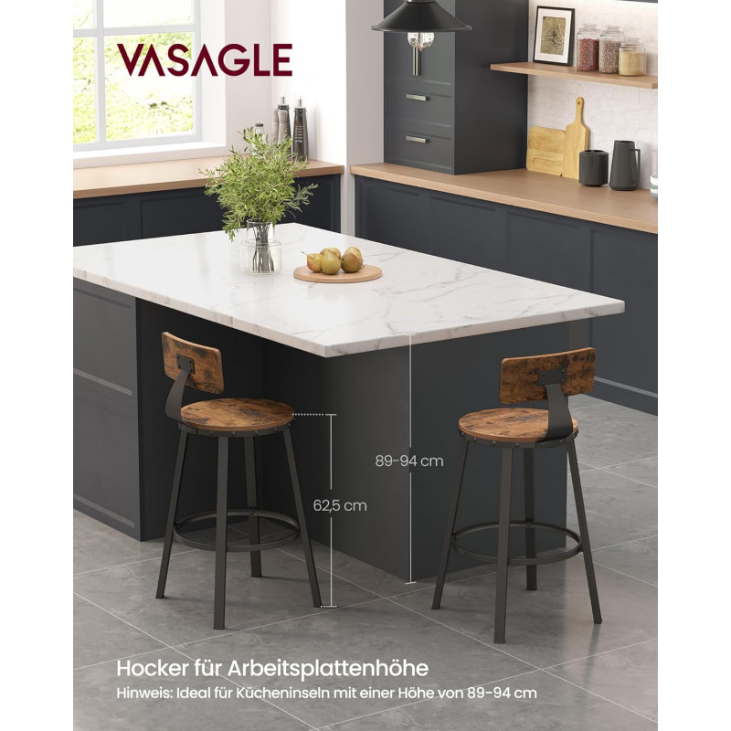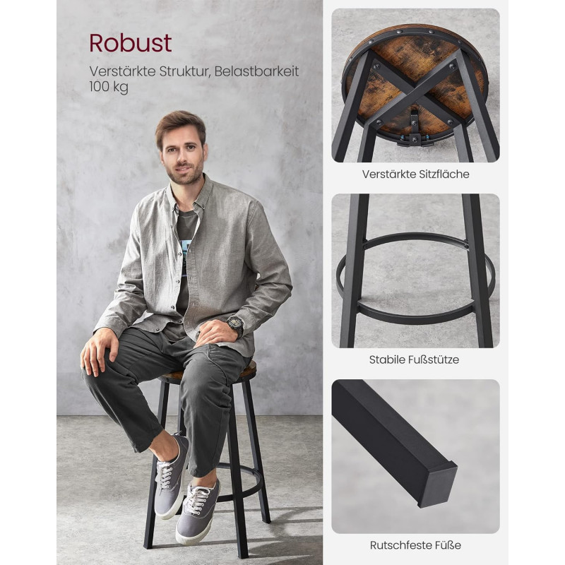 Instructiuni Note VASAGLE: Acest produs este destinat exclusiv utilizarii la domiciliu.Din motive de siguranta, copiii nu trebuie sa se urce pe produs sau sa se joace cu el.Capacitatea de incarcare statica a fiecarui taburet este de 100 kg. Va rugam sa nu depasiti limita de greutate a acestuia. Stabil Baza scaunului este intarita, suportul circular pentru picioare este sudat in siguranta, iar placutele antiderapante cresc frecarea pe podea. Aceste 2 scaune de bar industriale sunt stabile si rezista pana la 100 kg fiecare Confortabil pentru sedere Cu un scaun mare cu diametrul de 37 cm si un suport convenabil pentru picioare, acest set de scaune de bar va ofera un confort dublu Confortabil sa va sprijiniti Spatarul curbat este proiectat ergonomic pentru a se potrivi spatelui dvs. Cu un suport din otel ingrosat, spatarul este stabil si nu se va clatina Stil rustic Cu o suprafata maro, cadru din otel negru si accent de nit, aceste scaune inalte in stil industrial sunt perfecte pentru zona dvs. de bar, bucatarie, sufragerie si multe altele Asamblare rapida Pur si simplu puneti piesele numerotate impreuna in conformitate cu