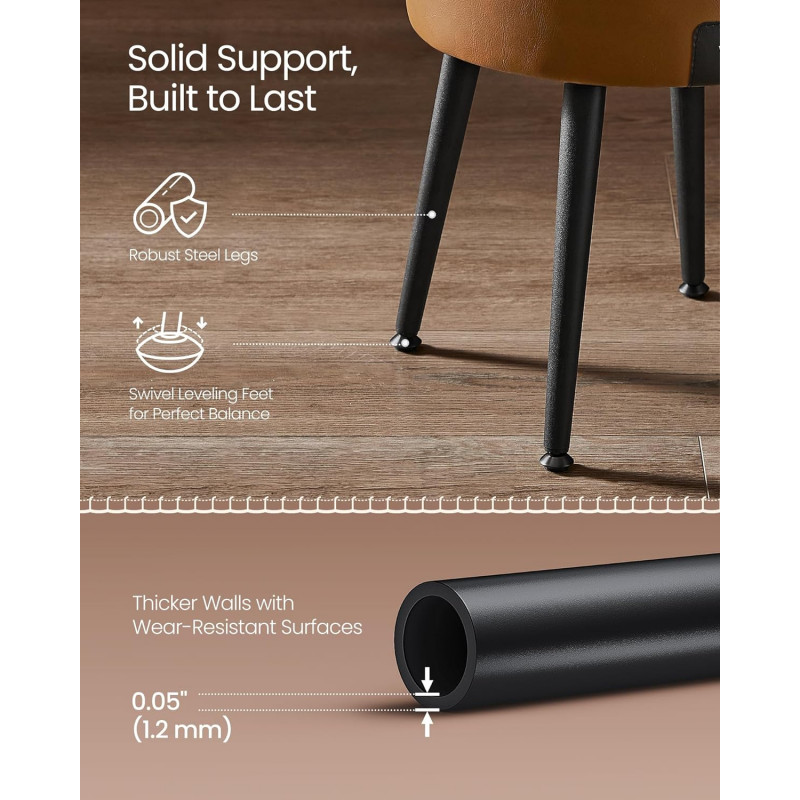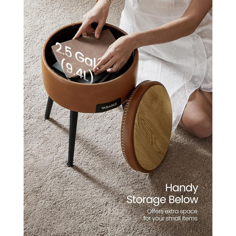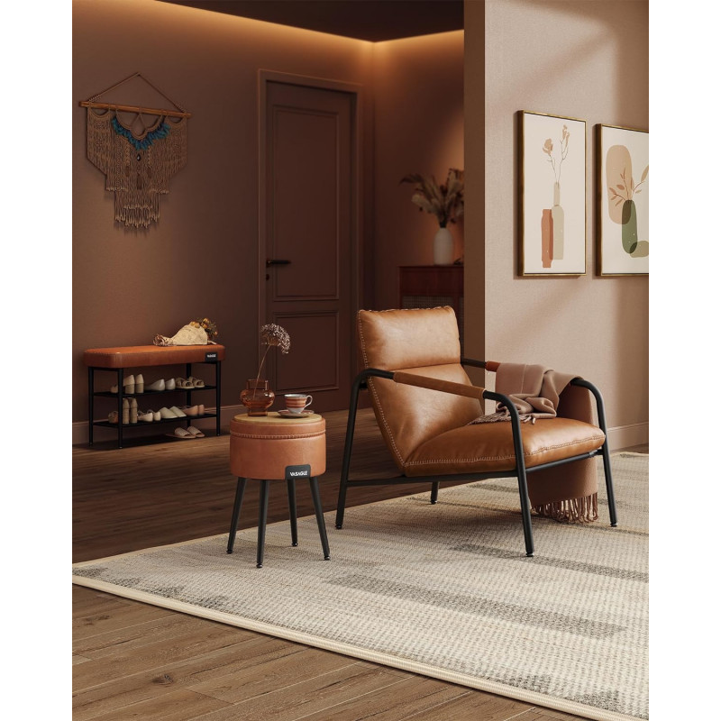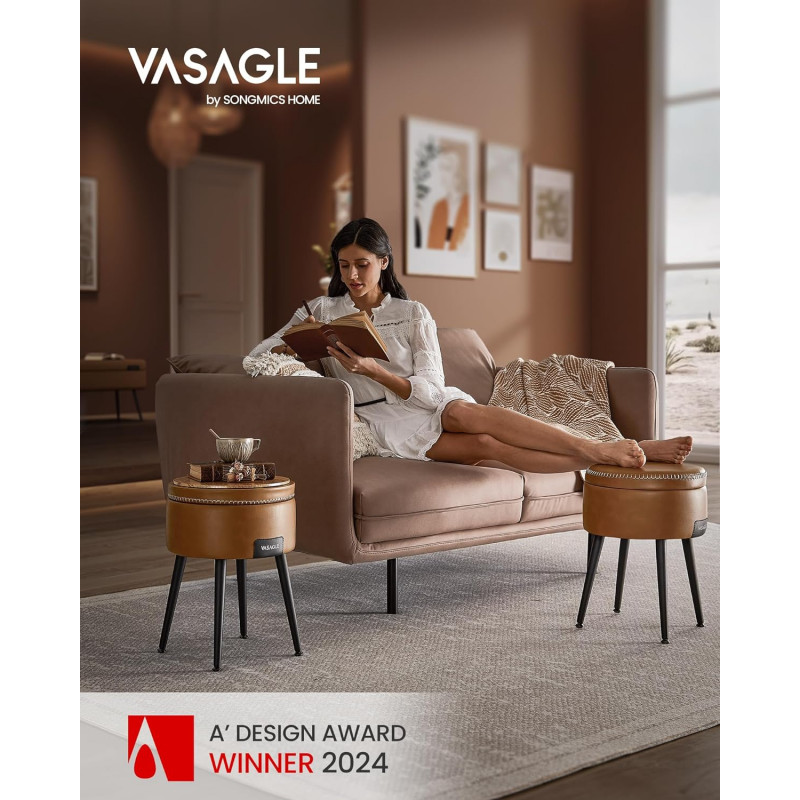 Instructiuni de utilizare Farmec si versatilitate Aceasta piesa de mobilier poate fi folosita ca taburet pentru masuta de toaleta, ca suport de picioare pentru fotoliu sau pur si simplu ca masuta laterala prin intoarcerea partii superioare. Cu un volum de 9,4 L, este perfecta pentru depozitarea obiectelor dvs. mici. Imbogateste-ti spatiul Bucura-te de aceasta combinatie de PU, cusaturi rafinate si picioare conice ale acestui otoman de depozitare din colectia VASAGLE EKHO, un omagiu concret adus spiritului artizanal, care iti inalta locuinta pe noi culmi de eleganta. Facut pentru a rezista Acest taburet de toaleta are 4 picioare din otel robust si este ranforsat cu un strat de perete gros de 1,2 mm. Acest taburet de depozitare ofera un sezut comfortabil care rezista in timp, fara a-si pierde forma. Usor de asamblat si de curatat Instalarea este o joaca de copii: pur si simplu fixati picioarele si fiti gata sa faceti senzatie cu noul dvs. taburet. In plus, suprafata sa din piele ecologica de calitate il face usor de curatat si ramane impecabila cu un efort minim.
